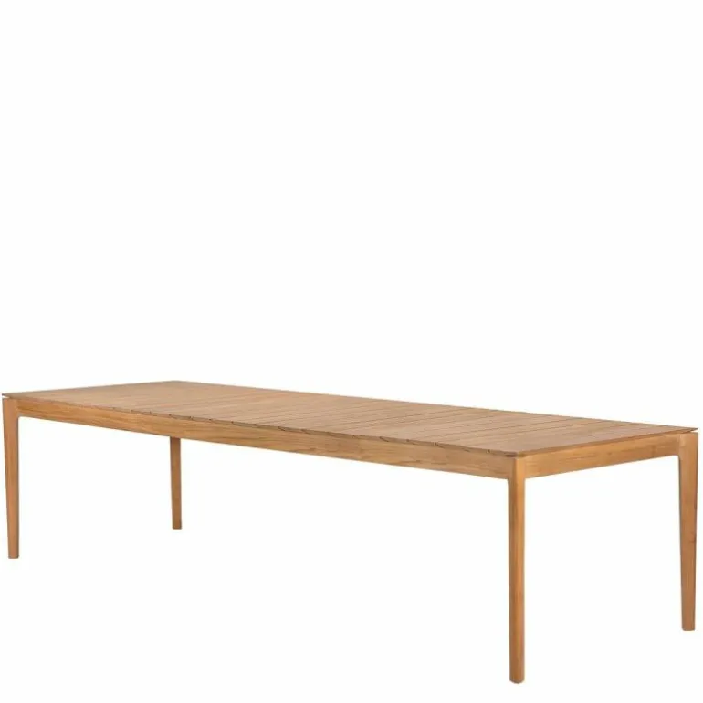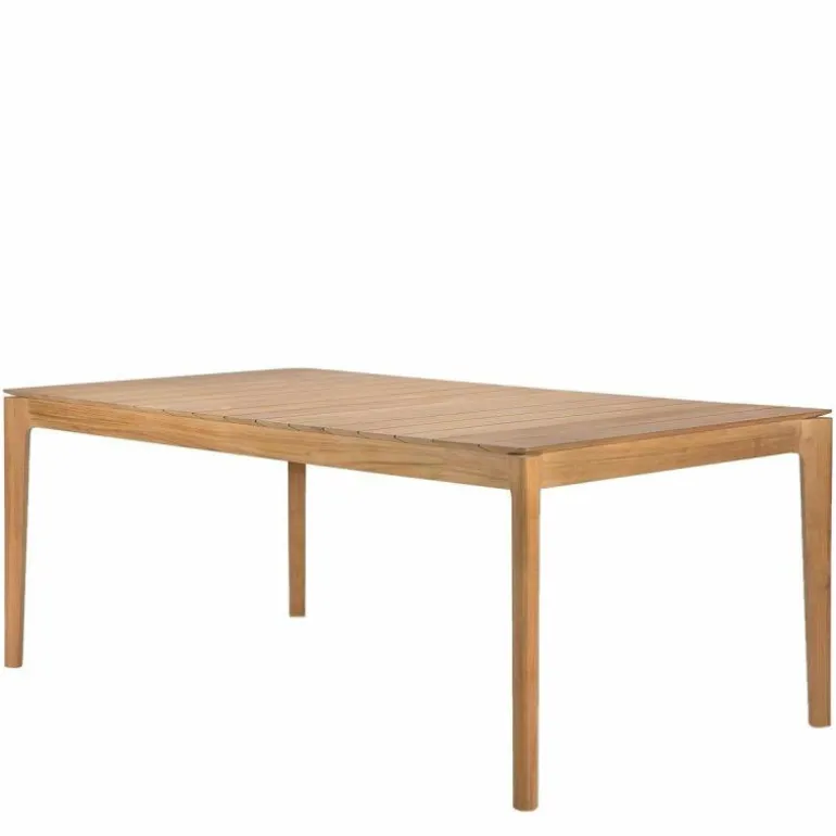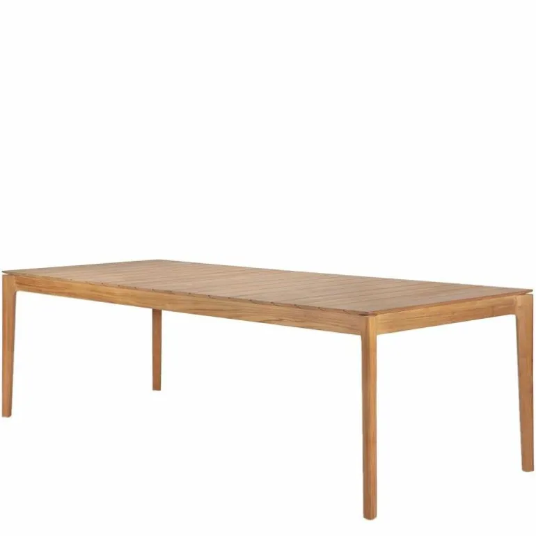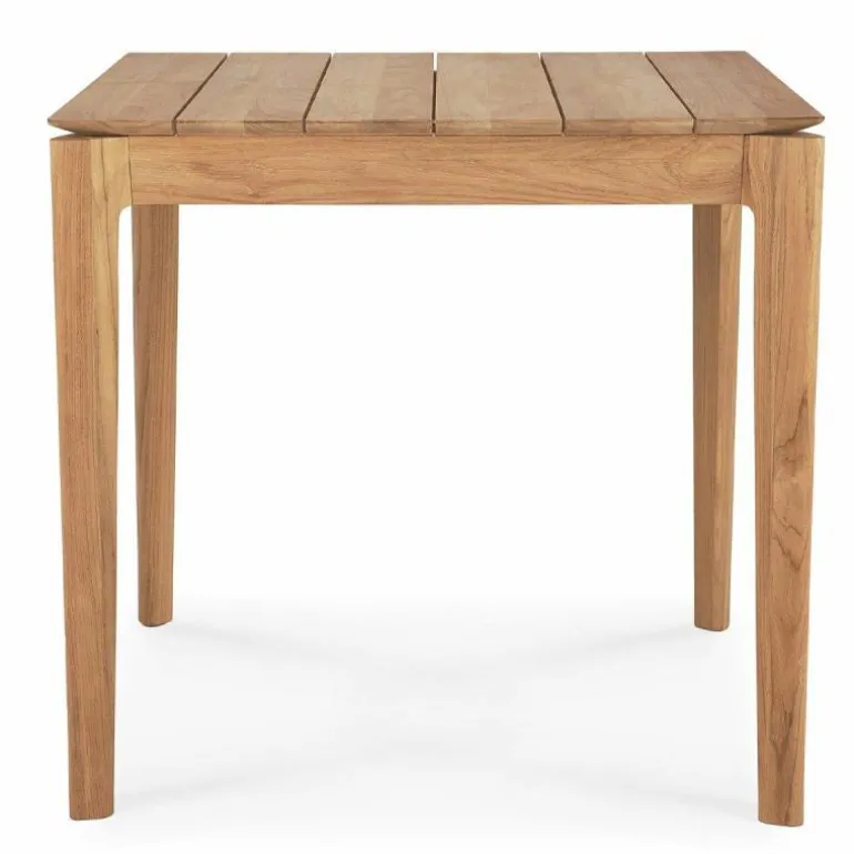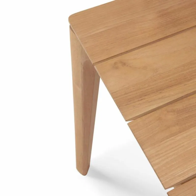 Vervaardigd uit massief teak, staat deze buitentafel garant voor duurzaamheid, weerbestendigheid en een natuurlijke uitstraling. Teakhout is van nature rijk aan oliën, waardoor het bestand is tegen diverse weersinvloeden zonder extra behandeling. Door het hout enkel te polijsten, komt de natuurlijke glans naar voren en blijft de karakteristieke nerf van het materiaal zichtbaar. Dit onderstreept niet alleen de kwaliteit van het gebruikte hout, maar ook het ambachtelijke vakmanschap dat aan de basis ligt van het ontwerp.