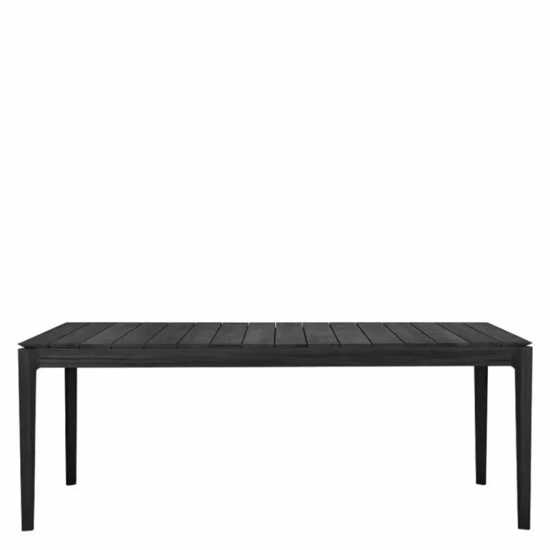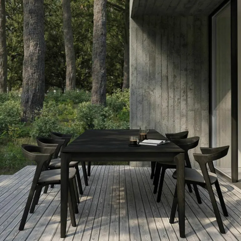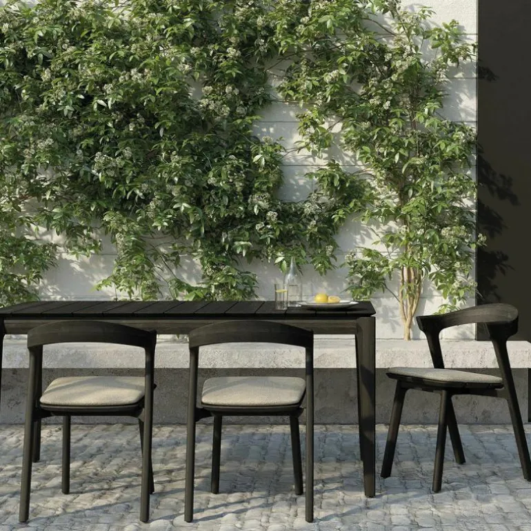 De Bok Outdoor Eettafel onderscheidt zich door zijn elegante belijning en verfijnde details. De vier poten lopen subtiel schuin af aan de bovenzijde, waardoor het tafelblad op natuurlijke wijze lijkt te zweven. Deze constructieve verfijning resulteert in een ontwerp dat visueel licht oogt, maar tegelijkertijd een robuuste stabiliteit biedt. Het ontwerp sluit naadloos aan bij de esthetiek van moderne buitenruimtes en creëert een uitnodigende setting voor diners, borrels of informele bijeenkomsten.
