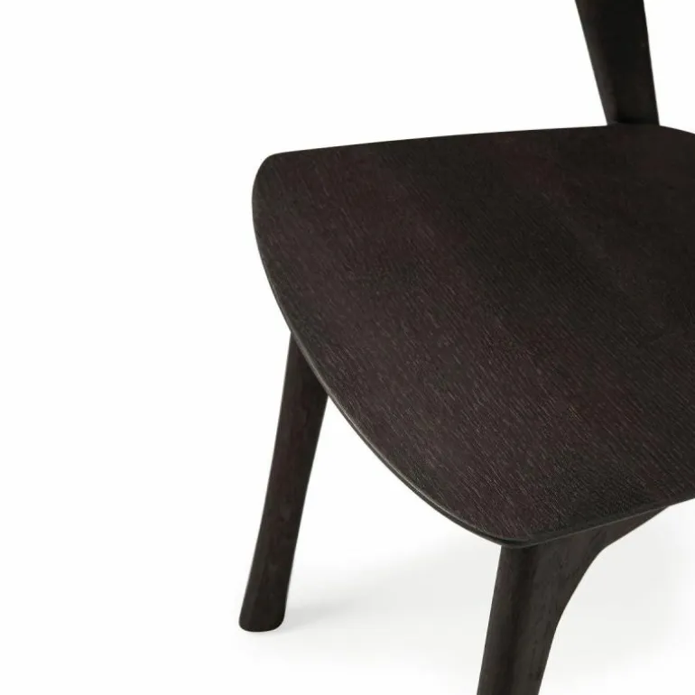 Het ontwerp is vervaardigd uit massief hout van hoogwaardige kwaliteit. De beschikbare afwerkingen, zoals naturel eiken, vernisafwerkingen of geborsteld zwart eiken, dragen bij aan een luxueuze en duurzame uitstraling. De stoel is tevens leverbaar in teakhout, wat het natuurlijke karakter van het ontwerp extra benadrukt. Elke afwerking biedt een unieke esthetiek, afgestemd op uiteenlopende interieurvoorkeuren, van minimalistisch en Scandinavisch tot warm en eclectisch.