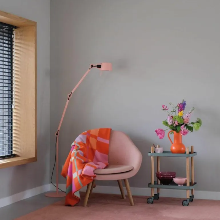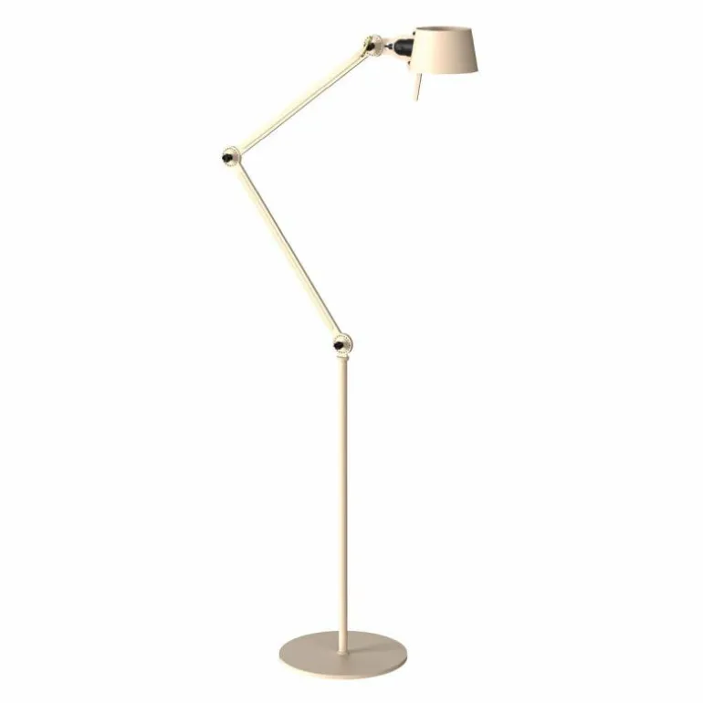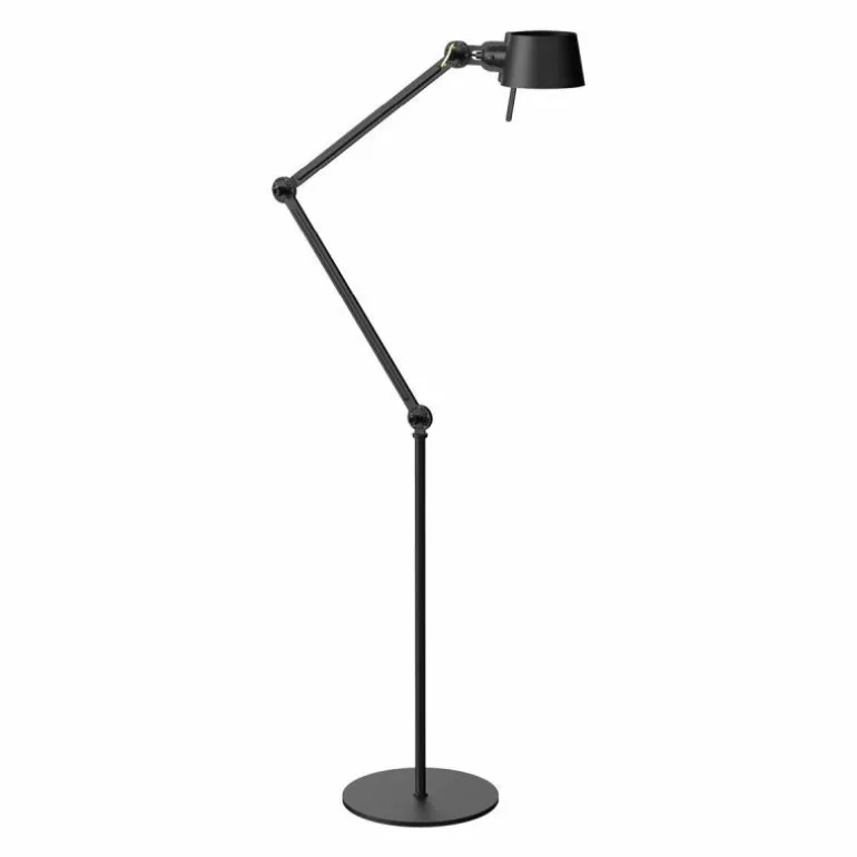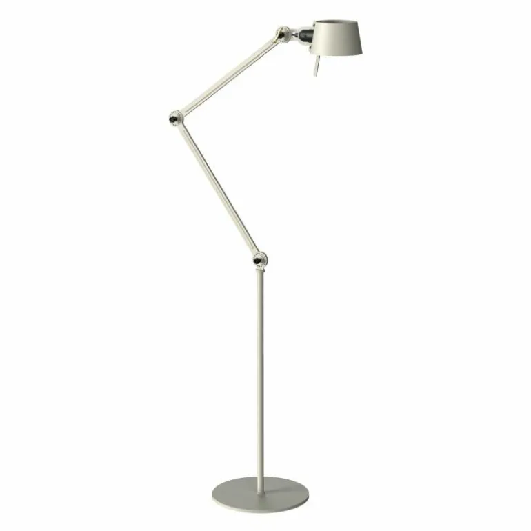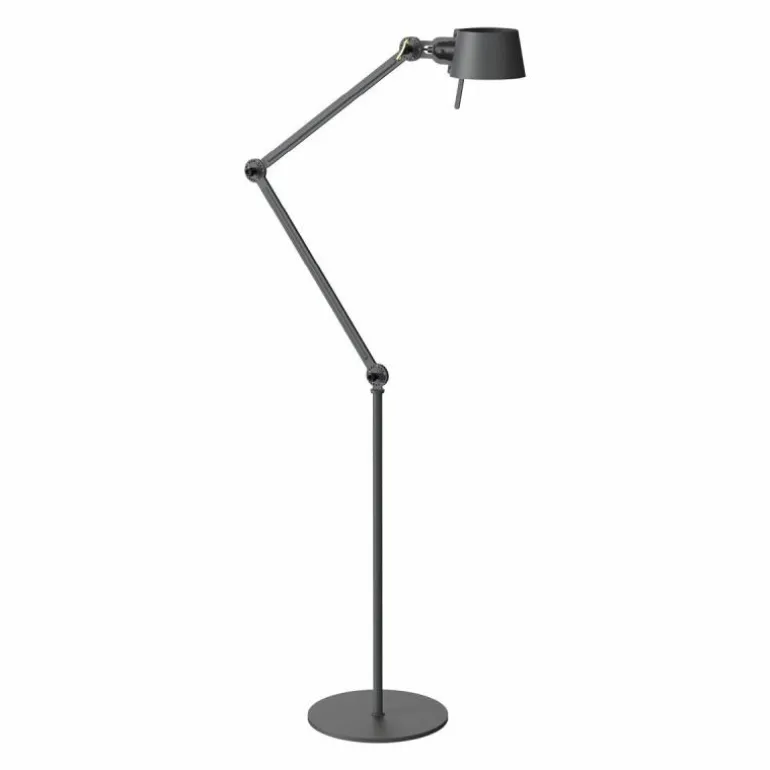 De Tonone Bolt Vloerlamp Twee Armen is een ontwerp van Anton de Groof. Anton De Groof zijn passie voor traditionele mechanieken bracht hem tot moderne, robuuste en tijdloze lampdesigns. De vloerlamp is een prachtige lamp die onder zijn productlijn Bolt valt. Er zitten drie scharnieren aan de lamp die bestuurd kunnen worden doormiddel van een wingnut. Deze vleugelmoer is een belangrijk onderdeel van het design, aangezien het zowel functionele als visuele waarde toevoegt. De verstelbaarheid zorgt ervoor dat de lamp in elke richting kan wijzen. De wingnut wordt standaard geleverd in messing, maar is ook leverbaar in koper, zwart aluminium en RVS. Als u deze liever ontvangt, neem dan contact met onze klantenservice op. De armen van de lamp zijn gemaakt van gepoedercoat metaal en de lampenkap van gepoedercoat aluminium. De lampenkap is open aan zowel de boven als de onderkant, hierdoor ontstaat een prachtig esthetisch beeld van licht en schaduw. Verder is de lamp beschikbaar in 8 verschillende kleuren, namelijk: Smokey Black, Pure White, Lightning White, Ash Grey, Midnight Grey, Flux Green, Thunder Blue en Striking Orange. r