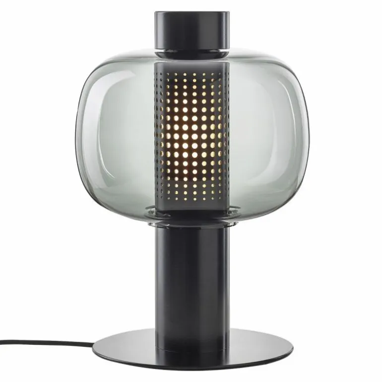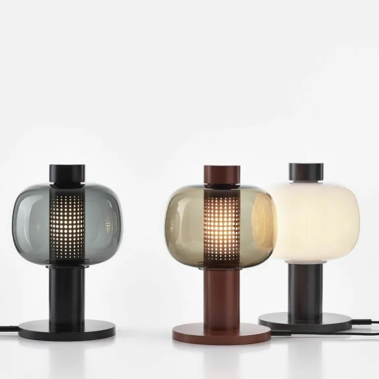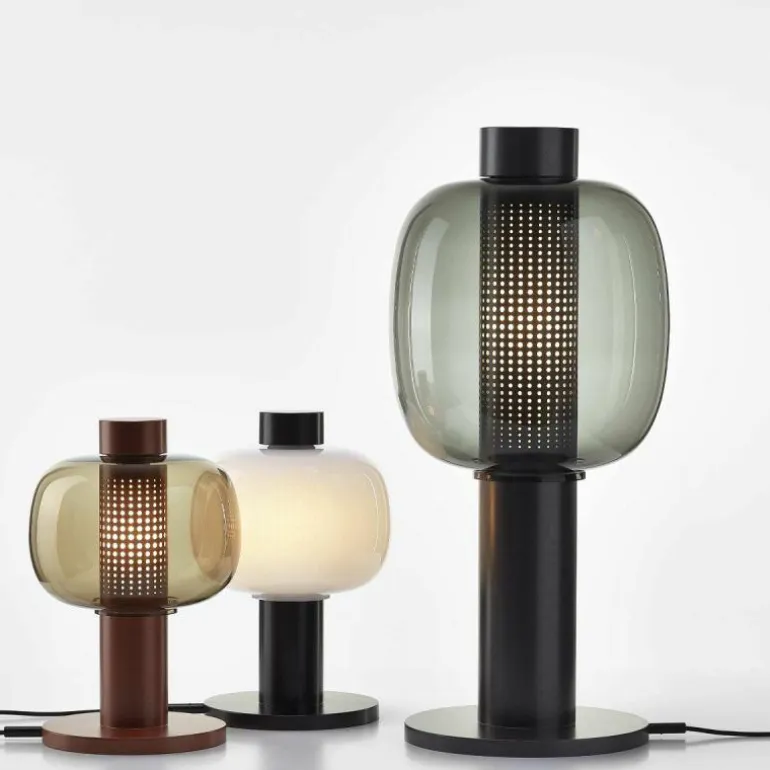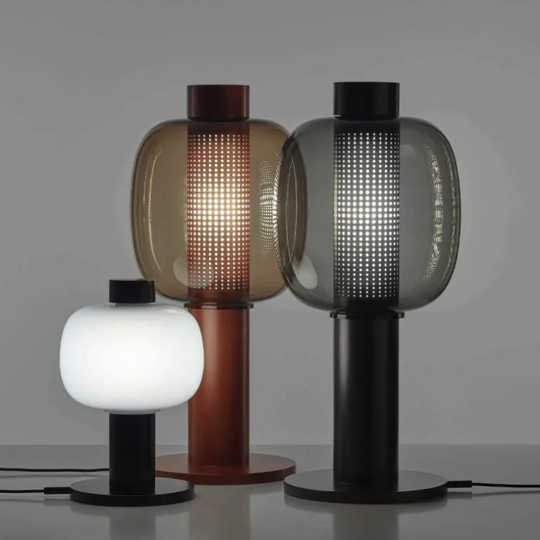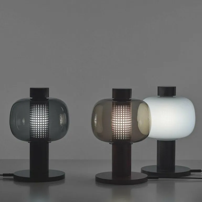 Het glas van de Bonbori Tafellamp is handgeblazen en te verkrijgen in vier verschillende kleuren: Smoke Grey, Smoke Brown, Opaline of Triplex Opal. De voet is vervaardigd uit metaal en afgewerkt in drie kleuren, namelijk Black Matte, Copper Metallic of Grey Metallic. In het metalen deel waar de glazen kap omheen zit, zijn gaatjes gemaakt met een laser. Dankzij deze gaatjes schijnt het licht op een elegante wijze door het metaal. r