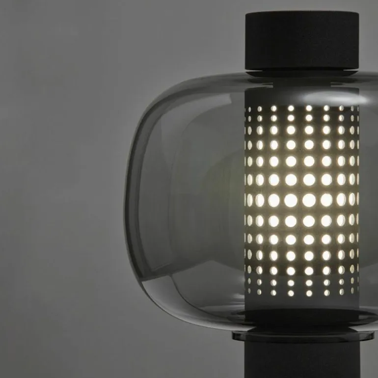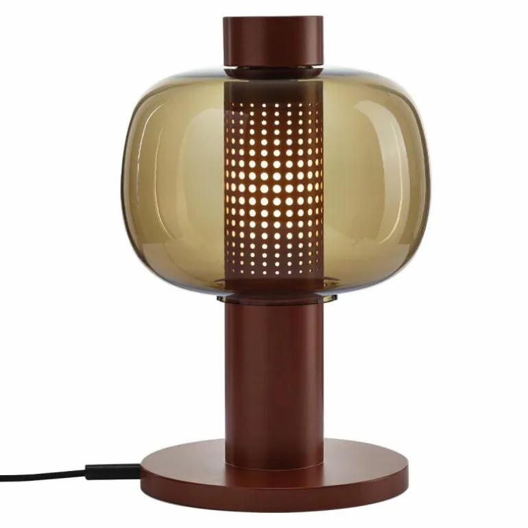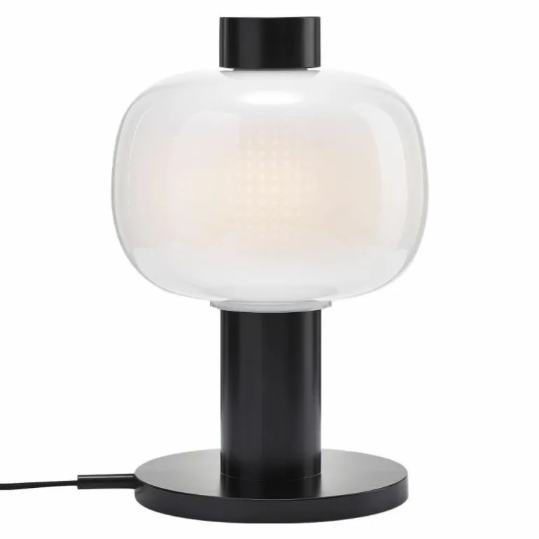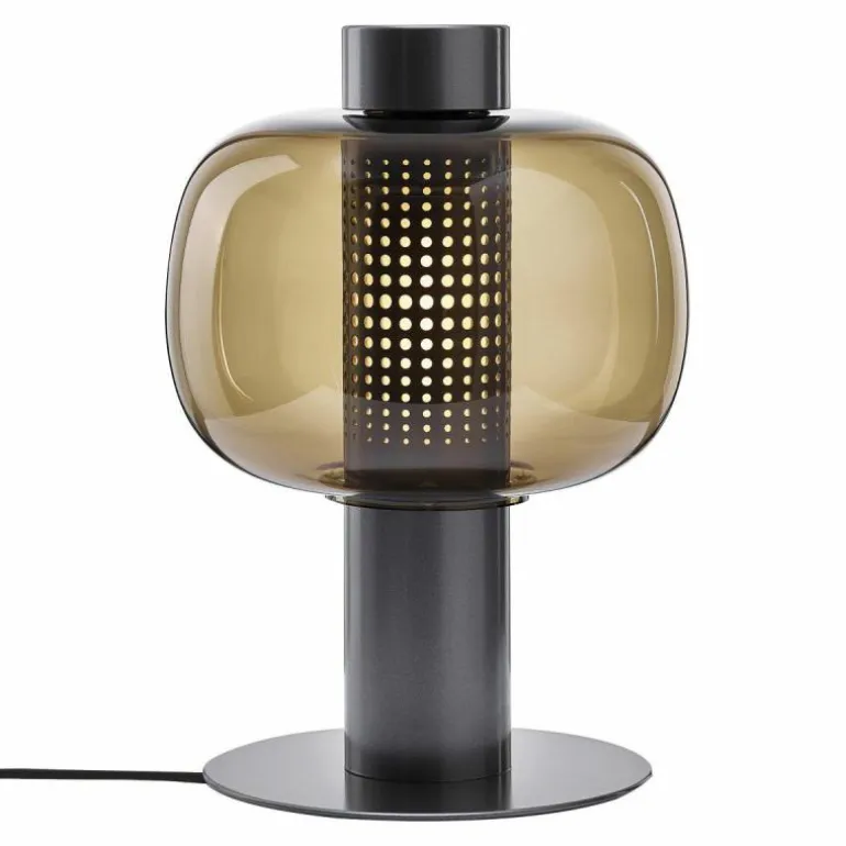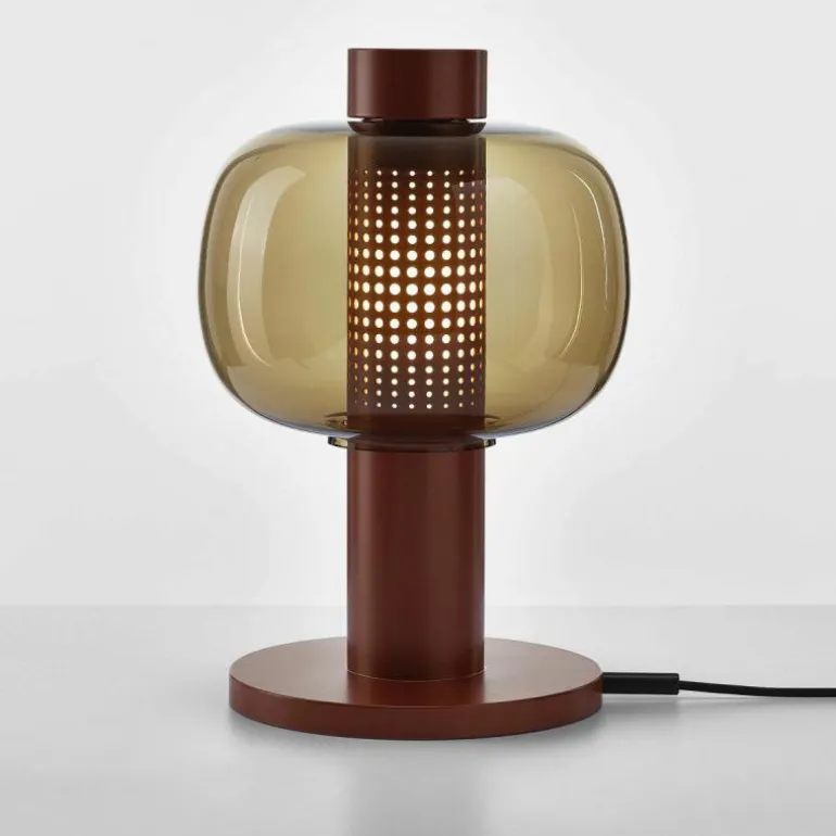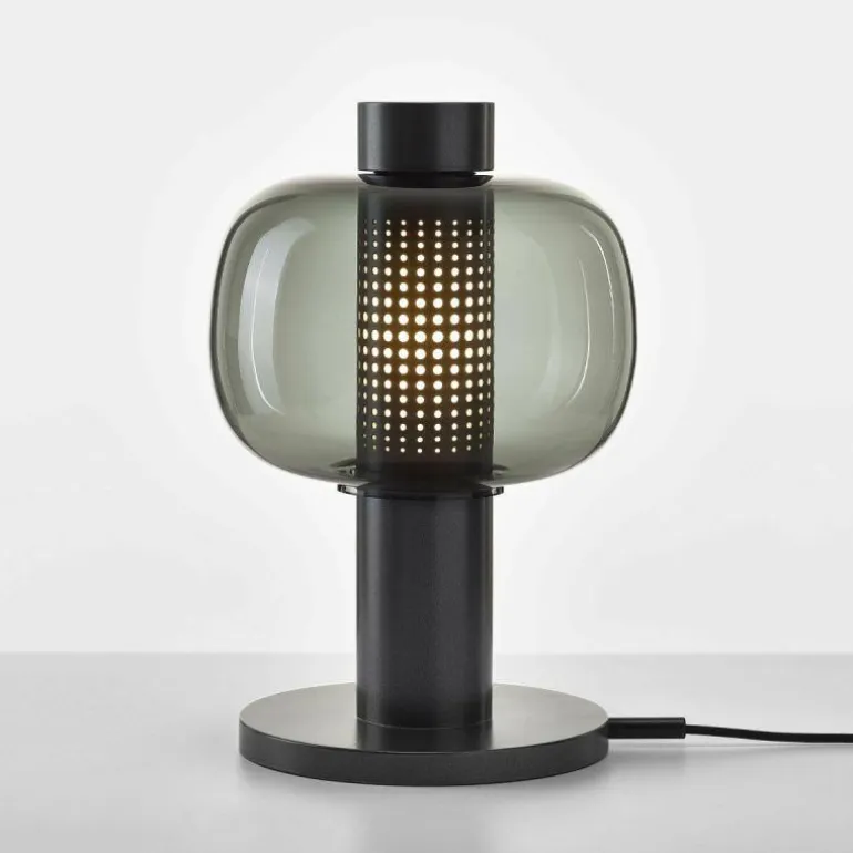Het glas van de Bonbori Tafellamp is handgeblazen en te verkrijgen in vier verschillende kleuren: Smoke Grey, Smoke Brown, Opaline of Triplex Opal. De voet is vervaardigd uit metaal en afgewerkt in drie kleuren, namelijk Black Matte, Copper Metallic of Grey Metallic. In het metalen deel waar de glazen kap omheen zit, zijn gaatjes gemaakt met een laser. Dankzij deze gaatjes schijnt het licht op een elegante wijze door het metaal. r