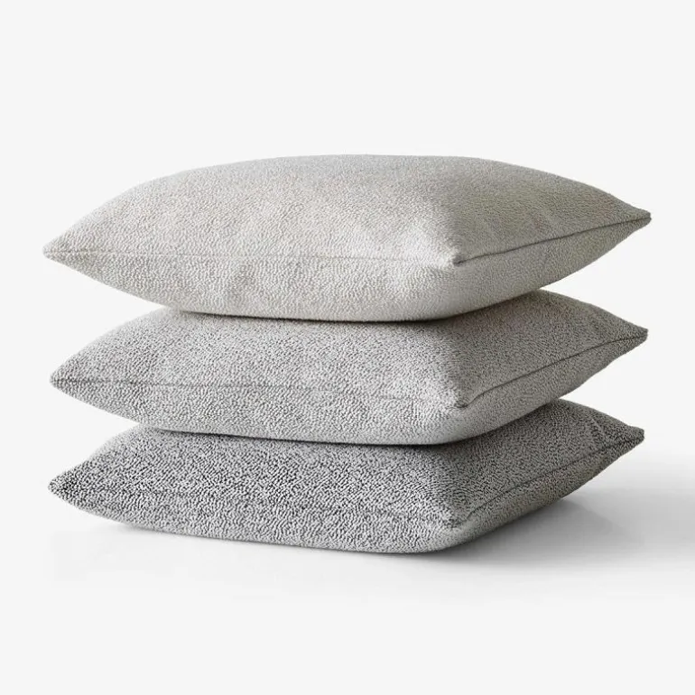 De hoes van het Boucle Kussen is voor 40% gemaakt van polyacryl, 29% viscose, 15% nylon, 9% polyester en 7% wol. De hoes aan de binnenzijde is van 100% katoen en het kussen is voor 50% gevuld met veren en voor 50% met dons. U heeft keuze uit drie prachtige die in tal van settingen passen. Iedere kleur is er in drie afmetingen: twee vierkante varianten van 50 x 50 of 65 x 65 centimeter en een langwerpig kussen van 80 x 50 cm.r