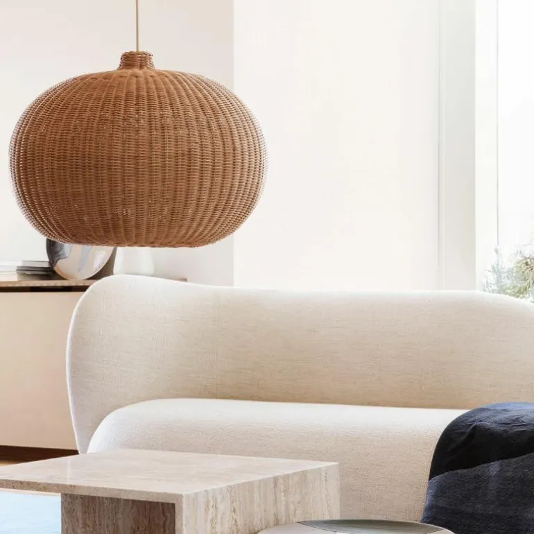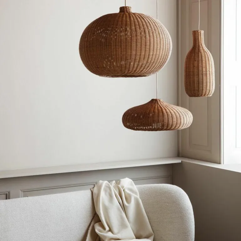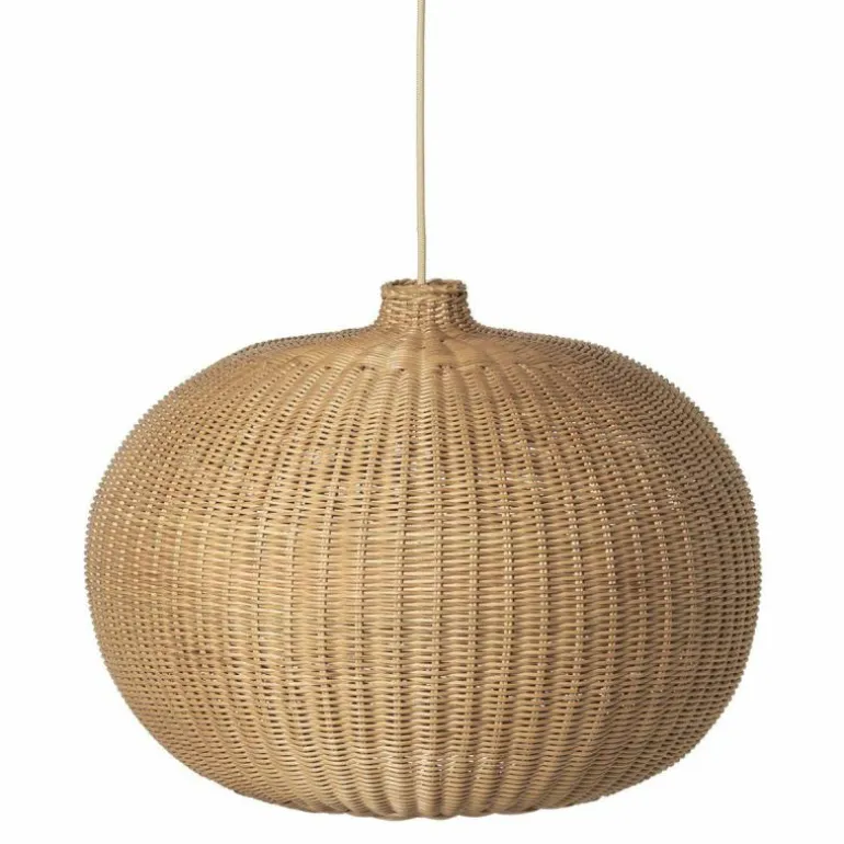 De Ferm Living Braided Belly Lampenkap is een ontwerp van Trine Andersen. Met de nieuwe collectie rotan hanglampen haalt Ferm Living ‘buiten’ naar ‘binnen’. Iedere rotan lampenkap wordt met de hand gevlochten, wat ieder van deze prachtige designs uniek maakt. Een van de designs uit de rotan collectie is de organisch gevormde Braided Belly Lampenkap. Van boven naar beneden prikt het licht zacht door de smalle gleuven van de gevlochten rotan heen. Tot aan de onderkant, daar bevindt zich een rond gat waar het licht door naar beneden schijnt. Deze prachtige kap is oorspronkelijk ontworpen voor de kinderkamer, maar zal ook zeker niet misstaan boven de eettafel of in de woonkamer. Met dit ruimtelijke design creëert u hoe dan ook een oase van rust.De Braided Belly Lampenkap heeft een diameter van 54,5 centimeter en een hoogte van 40 centimeter. Let op: de lamp wordt geleverd zonder koordset en lichtbron, deze moet u zelf meebestellen.