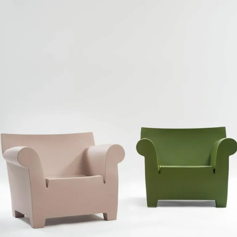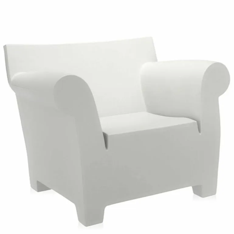 De Kartell Bubble Club Fauteuil is een ontwerp van de Franse designer Philippe Starck. Kartell staat bekend als de pionier van het plastic industrieel design en de internationaal bekroonde designers die voor Kartell ontwerpen laten zich regelmatig inspireren door klassieke vormen. Bubble Club is daar een perfect voorbeeld van: Starck baseerde de vorm vande Bubble Club-serie op de Engelse sofa’s van begin 20e eeuw met gerolde armleuningen, de zogeheten ‘club sofa’s’. De zachte lijnen hinten naar deze klassieke meubelstijl, die we allemaal kennen uit ‘oma’s woonkamer’ en waarderen om zijn gemoedelijke, uitnodigende, ruime uitstraling. Kartell giet deze sensatie in een kunststof jasje met een toffe kleur, waardoor Bubble Club inmiddels het iconische middelpunt is van moderne interieurs over de hele wereld. Het is deels een sculptuur, deels design en deels een statement.r