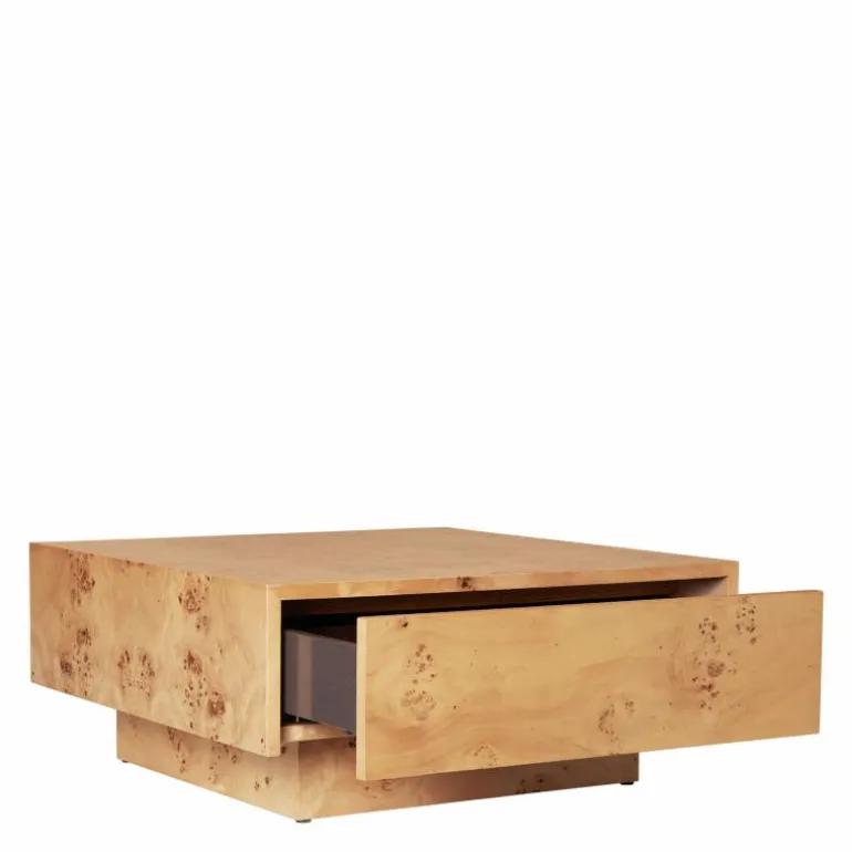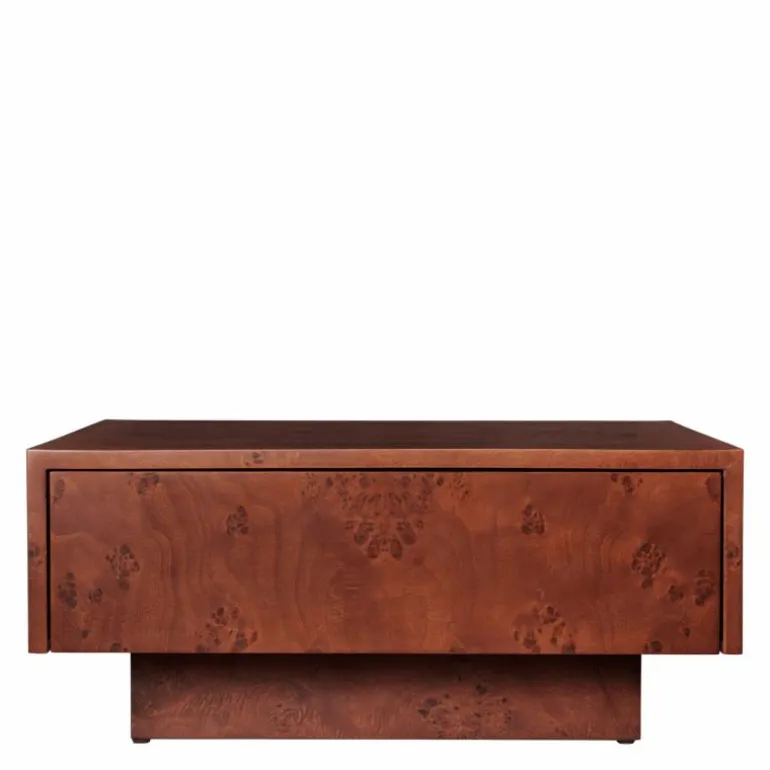 Met een gewicht van 32 kilogram en een solide constructie vormt de Burl Storage Salontafel een stabiele basis in de zithoek. De natuurlijke afwerking maakt het ontwerp geschikt voor uiteenlopende interieurstijlen, van modern tot klassiek. De tafel functioneert zowel als praktische opbergoplossing als visueel middelpunt binnen de ruimte.