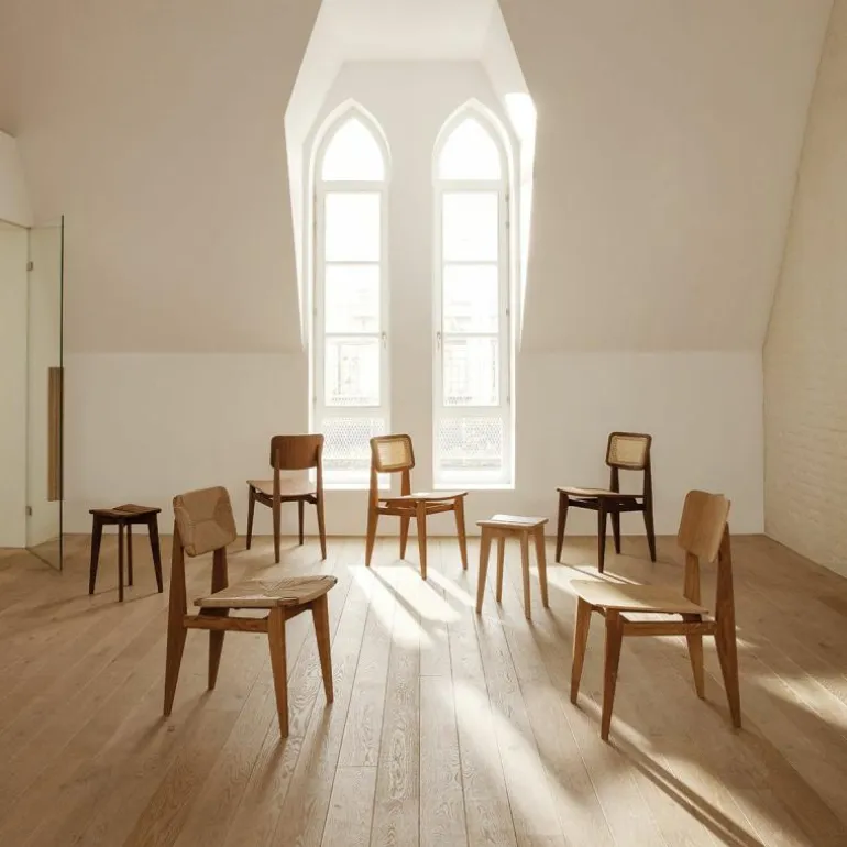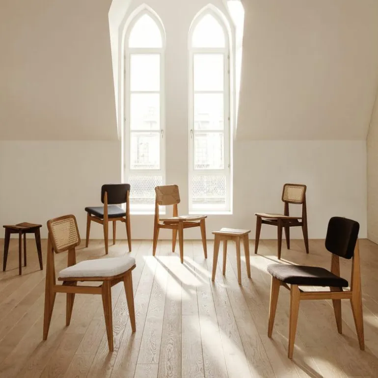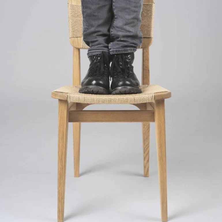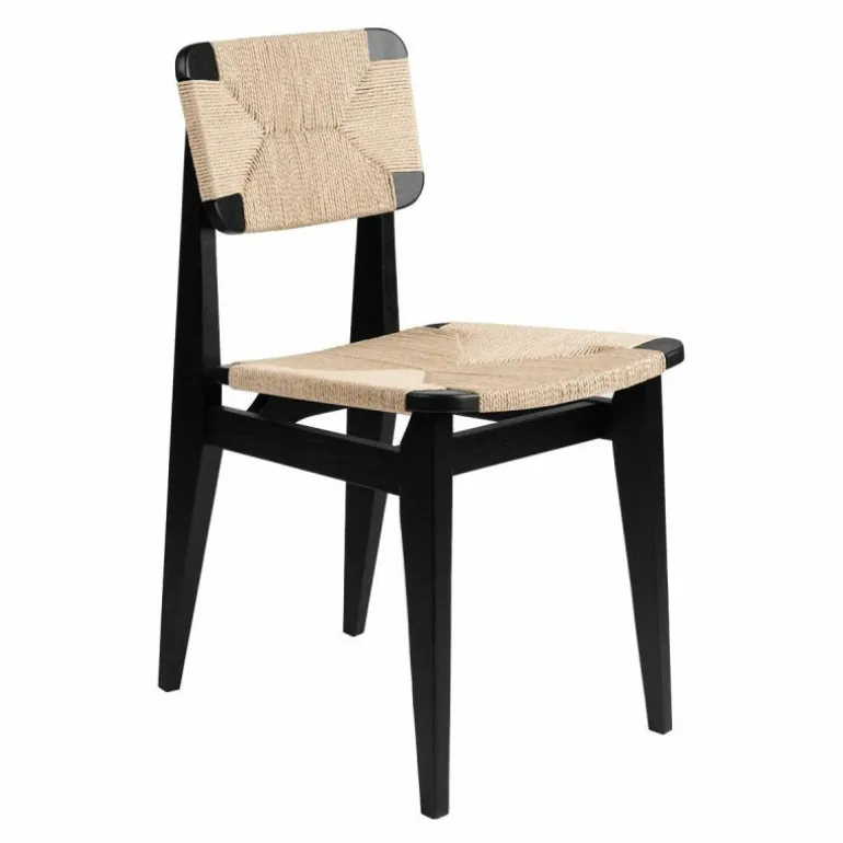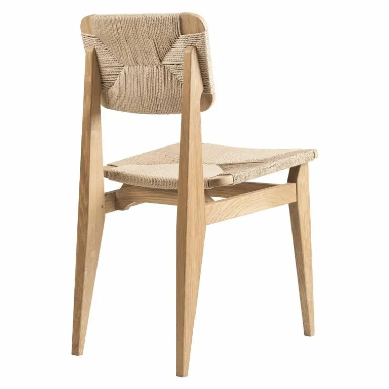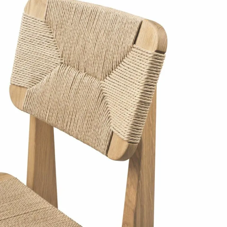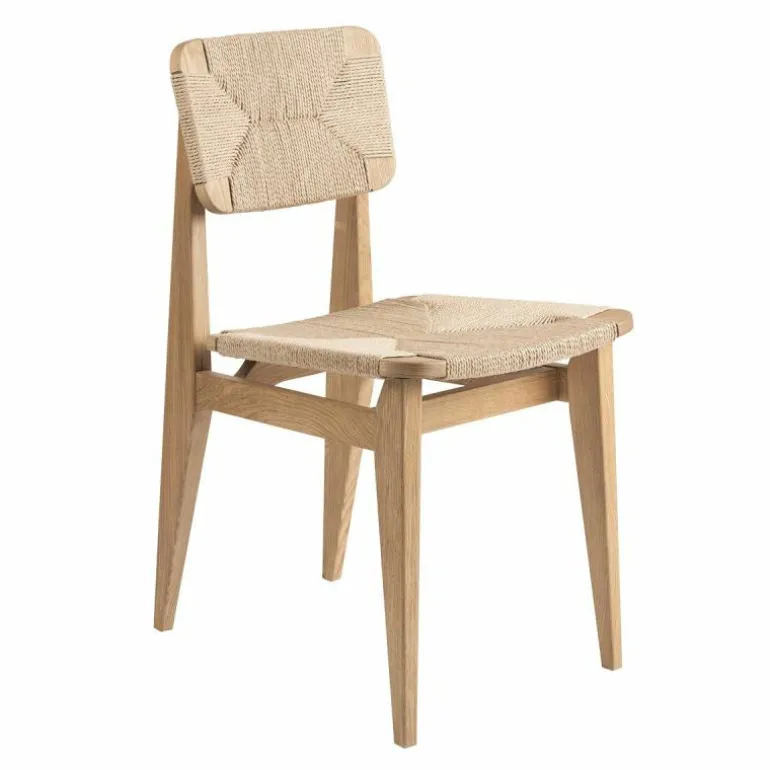 Voor het maken van de stoel is gebruik gemaakt van Gascoin’s originele design. De enige aanpassing die aan de stoel gemaakt is, is de zithoogte. Deze is verhoogd om aan te sluiten op de hedendaagse behoefte. Het frame van de stoel is vervaardigd uit hout en u heeft de keuze uit geolied walnoot, geolied eiken en zwart gebeitst eiken. De zitting en rugleuning zijn van geweven papierkoord. Dit stevige materiaal gaat, bij normaal gebruik, vele jaren mee. Daarnaast voegt dit materiaal karakter toe aan het prachtige design. De C-Chair is verkrijgbaar in verschillende uitvoeringen, neem hiervoor een kijkje in de productfamilie.