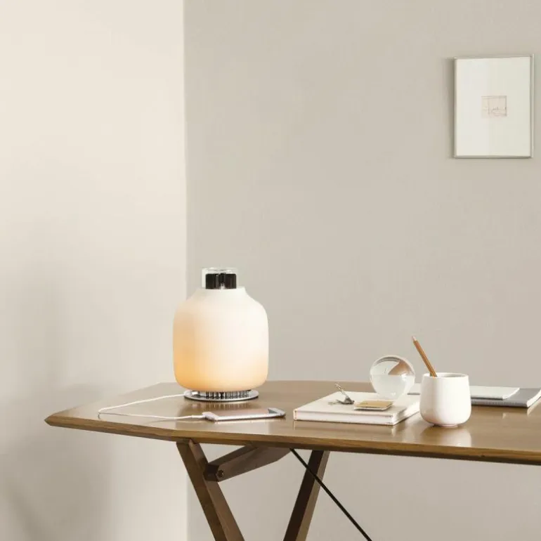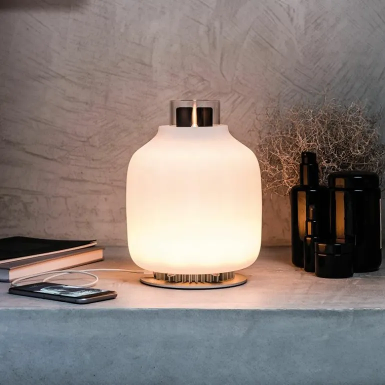 De Astep Candela Tafellamp is een ontwerp van Francisco Gomez Paz. In dit unieke design komen de oudste en de nieuwste vormen van verlichting samen. Gomez Paz liet zich voor Candela inspireren door de evolutie van verlichting en het resultaat is een vernieuwend ontwerp. De ledverlichting in dit design wordt namelijk dankzij een energieopwekkingssysteem gehaald uit de hitte van een vlam. Naast de unieke techniek die wordt gebruikt is de lamp ook voorzien van een moderne en elegante look. Hierdoor is de lamp geschikt voor diverse interieurstijlen en dankzij het snoerloze karakter bent u niet afhankelijk van een stopcontact, ideaal!De lamp heeft een aluminium body en een diffuser gemaakt van opaline glas. In het design wordt gebruik gemaakt van het Seebeck-effect om elektriciteit op te wekken. Hiervoor wordt de vlam die ontstaat omgezet in ledverlichting. Om deze vlam te creëren wordt gas gebruikt en er is gekozen voor bio-ethanol. Dit is een schone en natuurlijke brandstof gemaakt van planten. Bij een volle tank gaat de lamp 5 uur mee. De Candela produceert dus zijn eigen elektriciteit waardoor een stekker overbodig is. U kunt de lamp eenvoudig verplaatsen en op elke gewenste plek neerzetten. Daarnaast kunt u ook nog eens uw mobiele apparaten opladen via een USB-ingang type A in de voet van de lamp.Bijgevoegd vindt u een pdf-document met hierin alle informatie over het gebruik van de Candela Tafellamp. Lees deze goed voor u gebruik maakt van de lamp.
