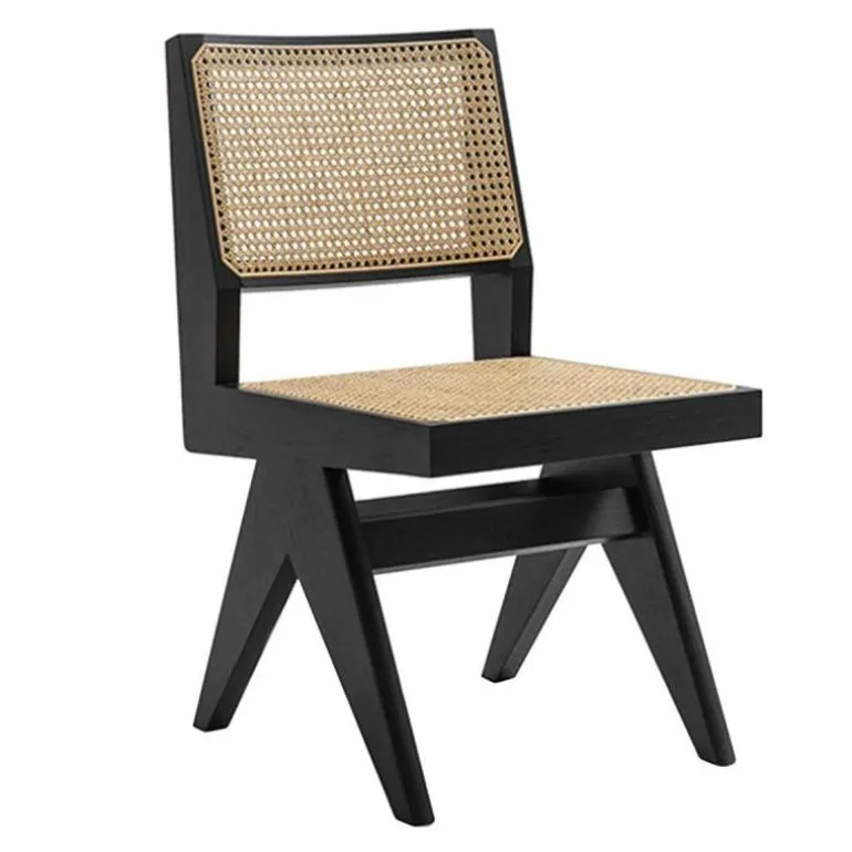 Het ontwerp is een ontmoeting tussen moderne Europese idealen en de traditionele Indiase geest, en bestaat uit eenvoudige vormen gecombineerd met natuurlijke materialen. De stoel is tevens een van de meest herkenbare designs uit de stad Chandigarh. Het frame, inclusief de zijbalken die in een omgekeerde “V’ de zitting ondersteunen, is vervaardigd uit massief kwaliteitshout. Op het frame zijn een geweven rugleuning en zitting gespannen, beide gemaakt van riet dat veel in de regio te vinden is. Met het zitkussen, speciaal ontworpen voor de Capitol Complex Chair, zorgt u voor een fijn zitcomfort op deze prachtige stoel. r