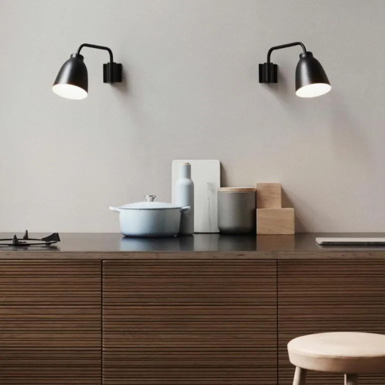De Caravaggio wandlamp is verkrijgbaar in de kleuren zwart en wit.r