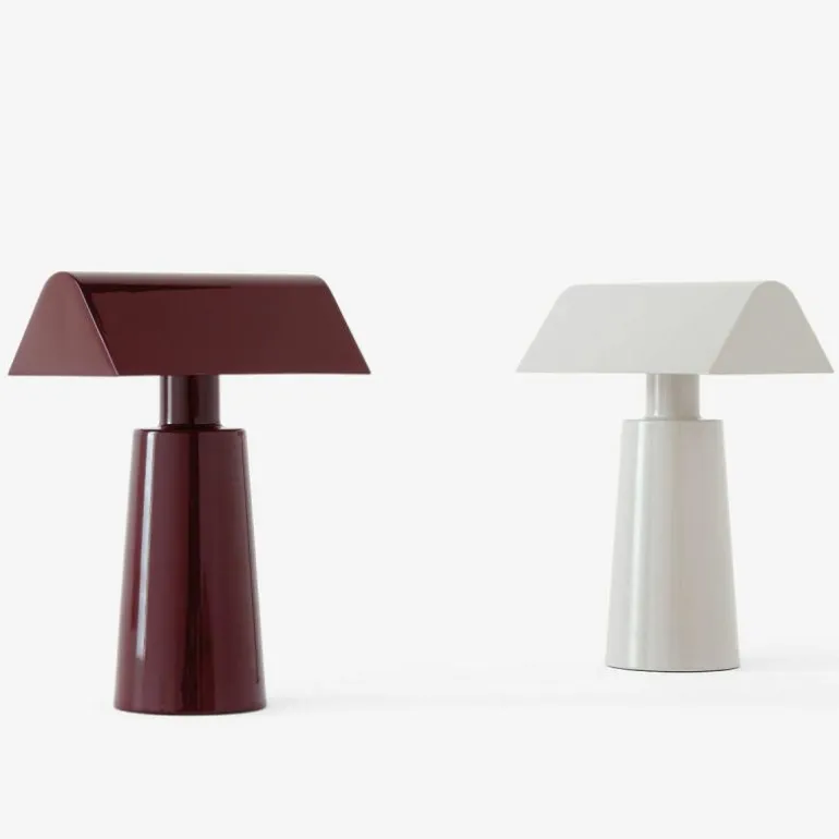 Het ontwerp is volledig gemaakt van gelakt staal en heeft een ronde basis. De lange piramidevormige bovenkant, met een lengte van 15 centimeter, zorgt voor een zacht en diffuus licht. De ronde basis heeft een diameter van 10 centimeter en in totaal is de lamp 22 centimeter hoog. Naast de vormen en het materiaalgebruik is ook de kleurkeuze een belangrijk aspect geweest in het iconische en tijdloze karakter van de Caret. De lamp is verkrijgbaar in twee eigentijdse kleuren: Dark Burgundy en Silk Grey. De elegantie van beide kleuren maakt dat deze het verstrijken van de tijd en trends doorstaan. r