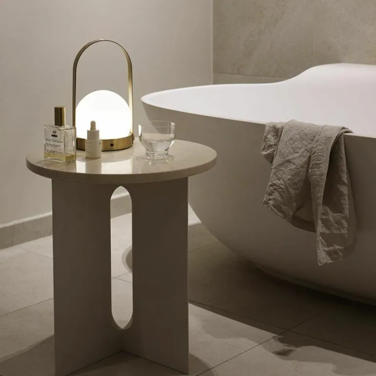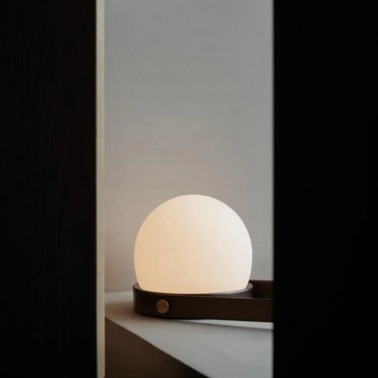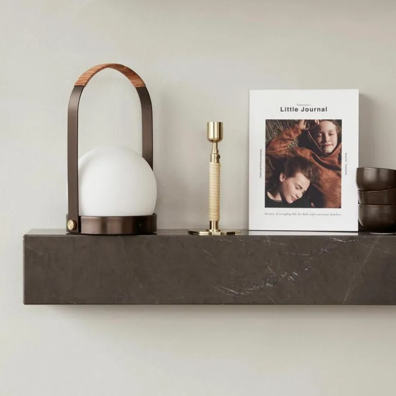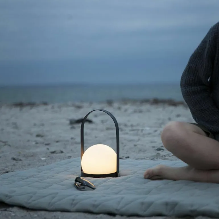 De Menu Design Carrie LED Tafellamp is een ontwerp van Norm Architects. Deze draagbare LED Lamp is een variant op de Carrie Kaarsenhouder. In plaats van een glazen windlicht is er een opaal glazen bol op het standaard geplaatst, welke een warm egaal licht verspreidt. Zijn naam is wellicht een woordspeling op het Engelse ‘carry’ en dat is voor deze lamp erg toepasselijk. U neemt hem namelijk overal mee naar toe. Hierdoor kan hij gebruikt worden als nachtlampje, maar staat hij ook goed ter vervanging van kaarsen op de eettafel. Of neem hem mee naar buiten voor een romantische picknick. De draadloze lamp kan opgeladen worden met de bijgeleverde usb-kabel en eenmaal opgeladen, gaat de batterij vijf uur mee. Een losse lichtbron is niet nodig, de lamp heeft een vaste interne LED lamp en kan gedimd worden in vier stappen; 0, 10, 50 en 100%. De standaard is gemaakt van gepoedercoat metaal en is verkrijgbaar met een witte en zwarte kleur. De handgreep kan losgekoppeld worden. r