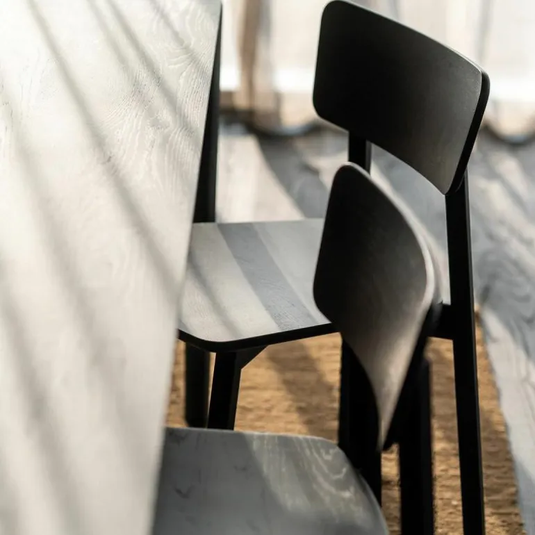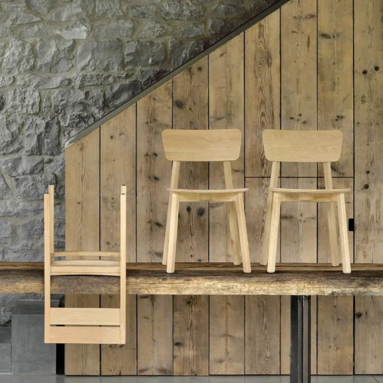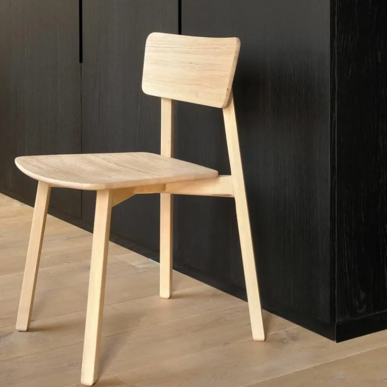De Casale Stoel is vervaardigd uit eikenfineer. De stoel is verkrijgbaar in naturel eiken- en zwart eikenhout. Het eikenfineer is afgewerkt met een transparante olie. Hoewel deze olie langdurige bescherming biedt, is het raadzaam de Casale Stoel na een aantal jaren eventueel opnieuw te behandelen met een Hardwax Oil. Deze kunt u direct mee bestellen. Verwijder vlekken wel altijd meteen met een lichtvochtige doek en milde zeep. Bovendien is de Casale Stoel verkrijgbaar in naturel eiken met een vernislaag.r