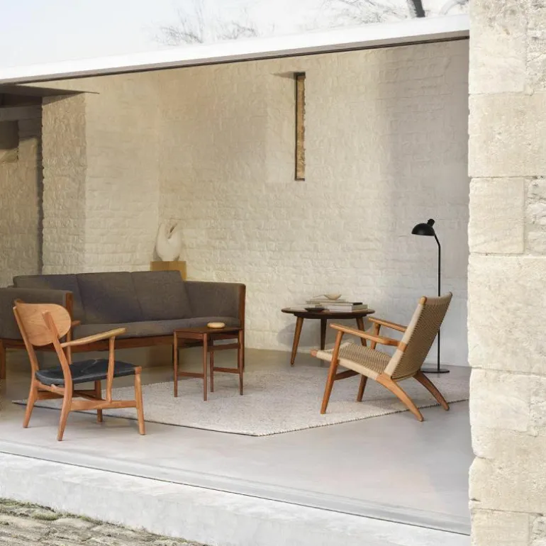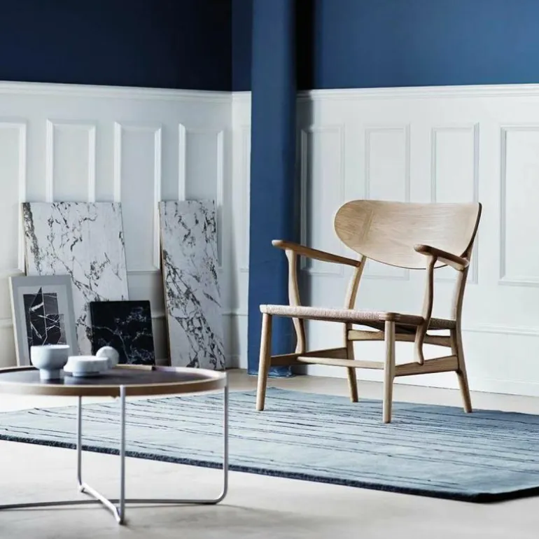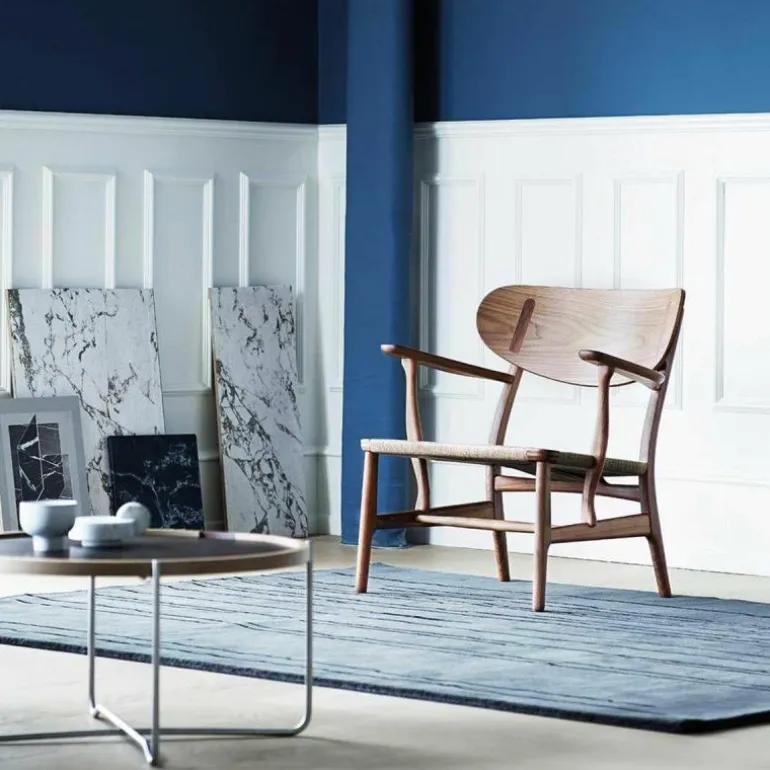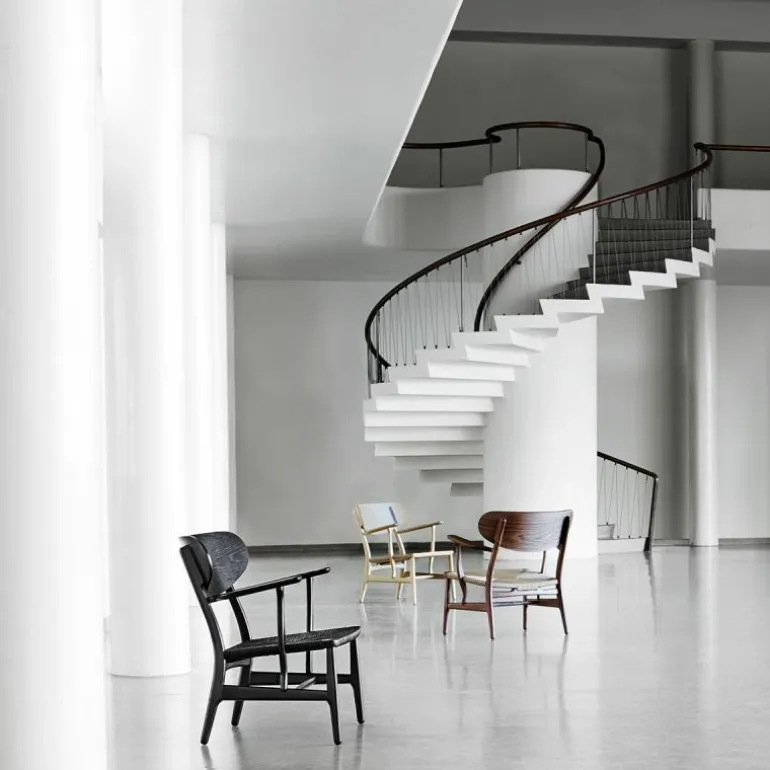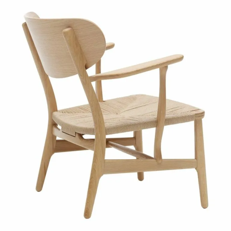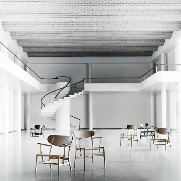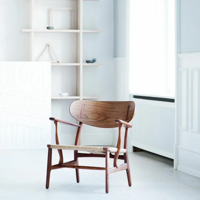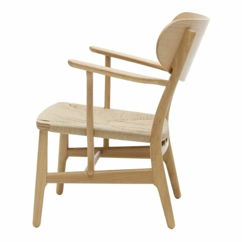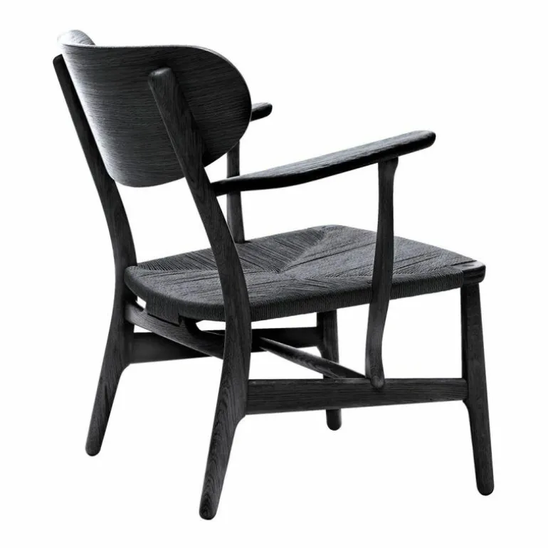 De cover cap op de rugleuning kan naar keuze vervaardigd worden uit eiken- of walnoothout. Kies voor eenzelfde afwerking als het frame van de stoel, of juist voor een andere afwerking voor een mooi contrast. De zitting van de CH22 is verkrijgbaar in naturel of zwart.r