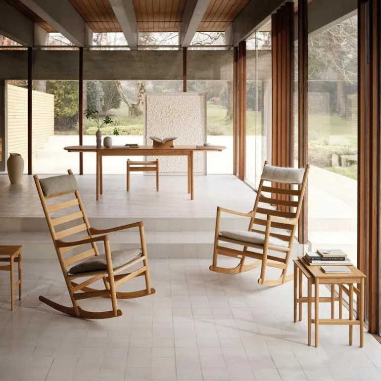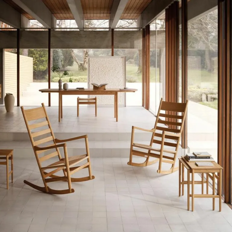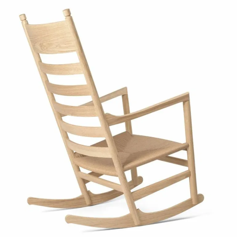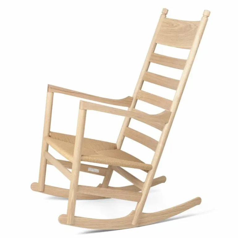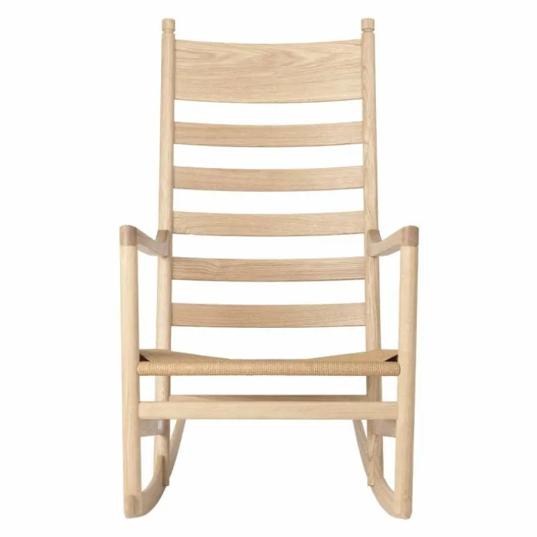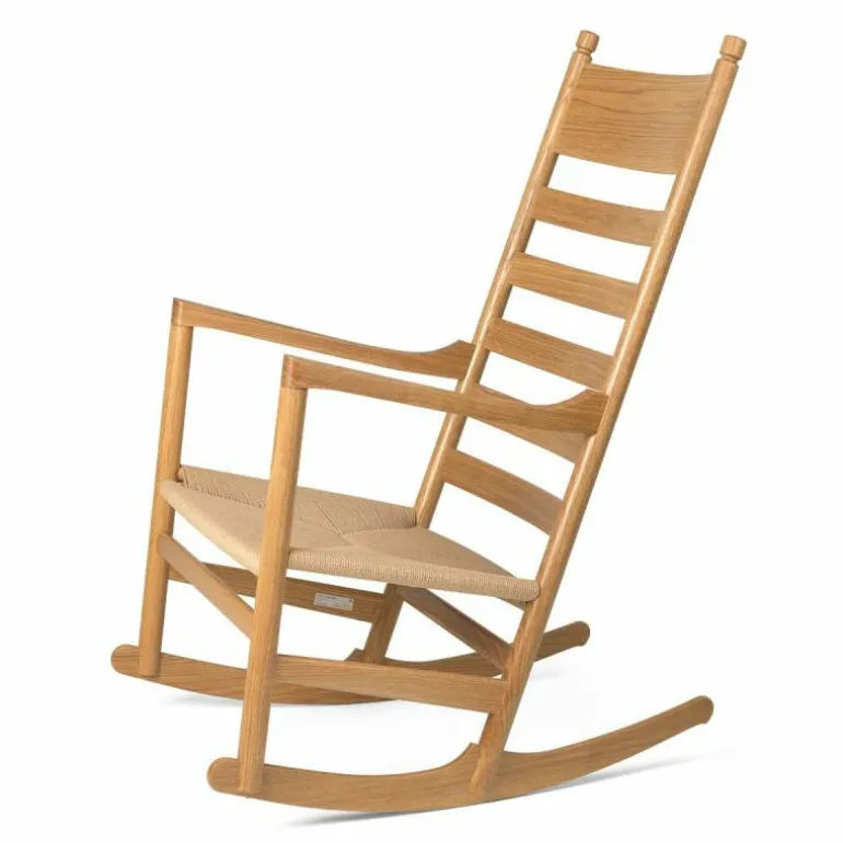 Carl Hansen & Søn staat bekend om zijn onberispelijke productie kwaliteit. Zo wordt elke stoel met de grootste zorg en aandacht voor detail vervaardigd. De CH45 Schommelstoel wordt gekenmerkt door zijn geweven zitting van papierkoord en heeft een frame van FSC-gecertificeerd eikenhout. Het massieve hout is verkrijgbaar in een naturel of zwart gelakte afwerking met olie, lak of zeep. Hoogwaardig vakmanschap en het gebruik van kwalitatieve materialen zorgen ervoor dat deze stoel een investering is voor de lange termijn. r