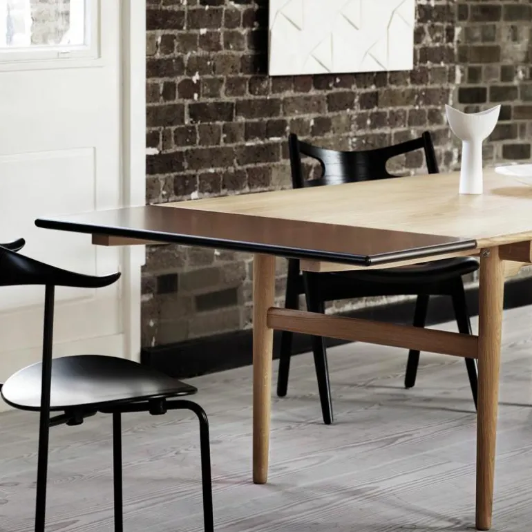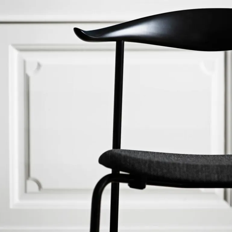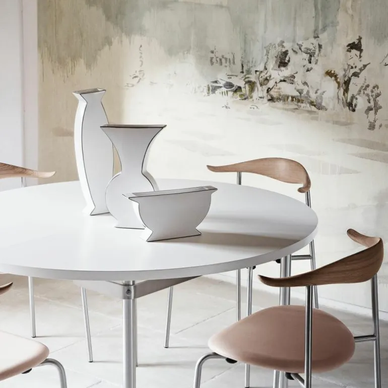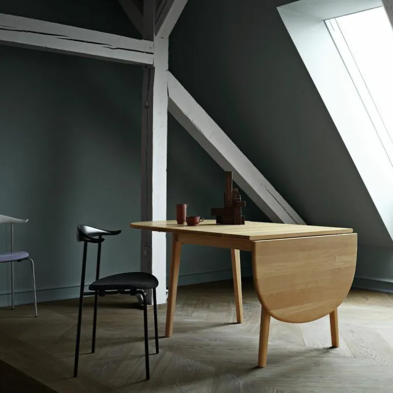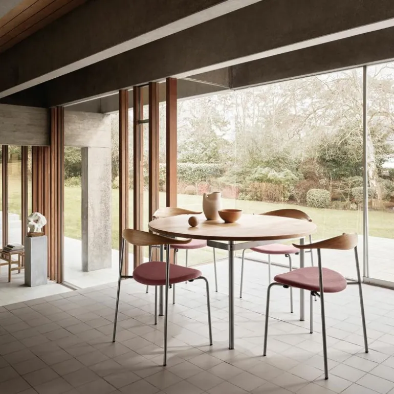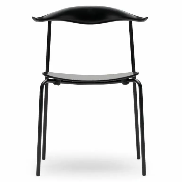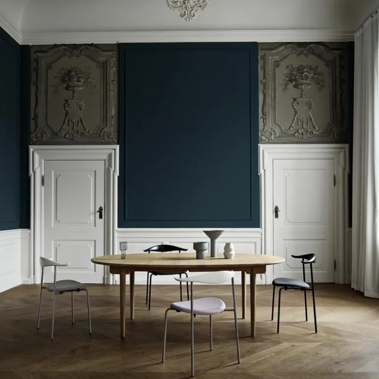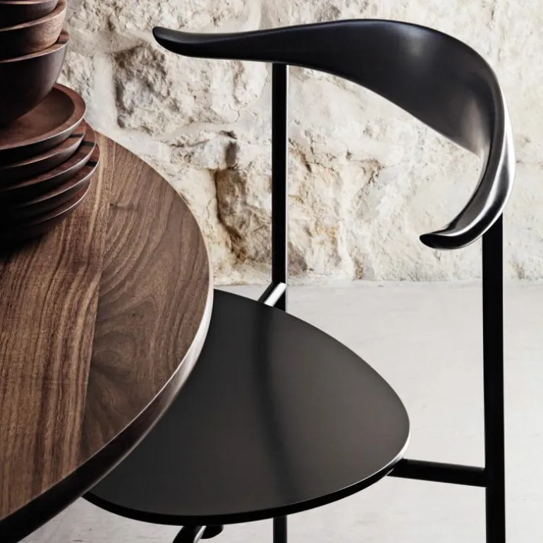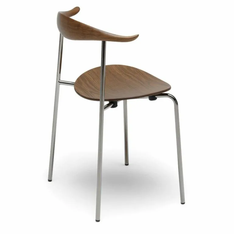 De ovale houten zitting wordt ondersteund door een stalen frame. De combinatie van materialen en het minimalistische design resulteert in een lichte, organische en industriële uitstraling. Een fijne bijkomstigheid is dat de stoelen stapelbaar zijn en dus geschikt voor als je regelmatig meerdere gasten ontvangt.r