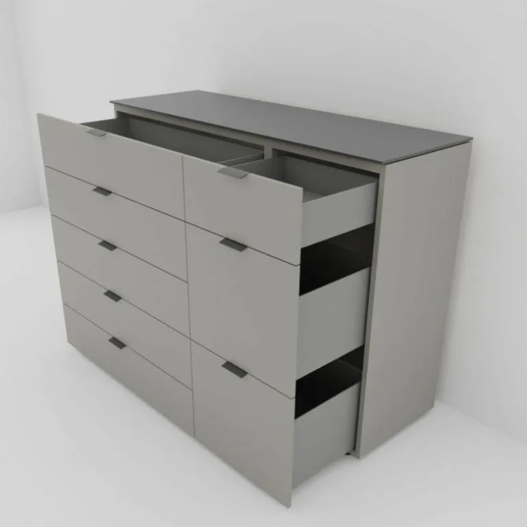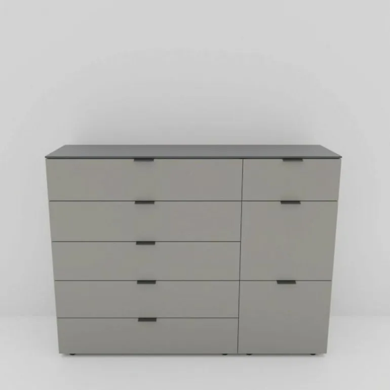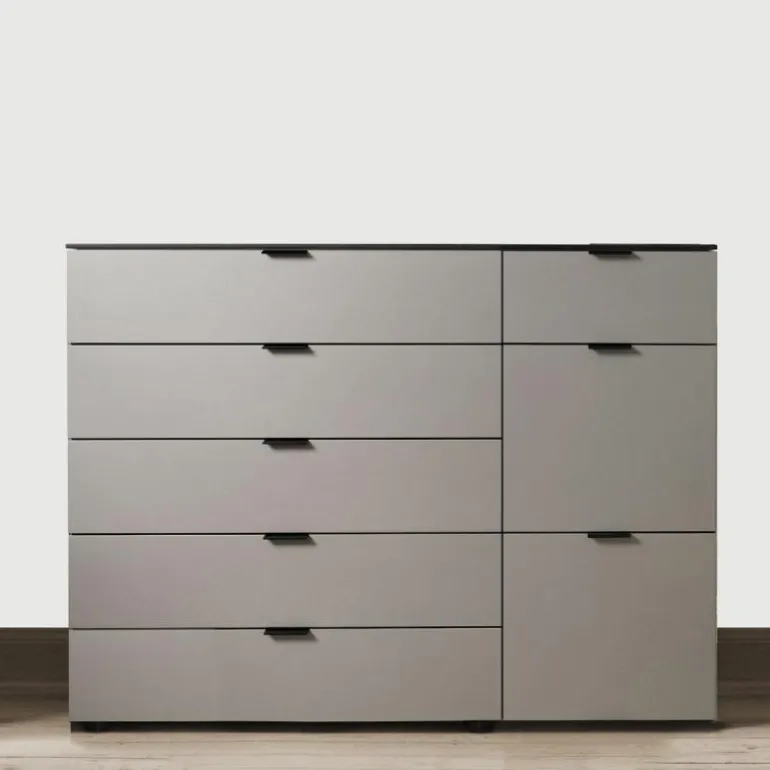 Het Change Kastsysteem is gemaakt van de meest hoogwaardige materialen. De eindeloze mogelijkheden maken dat wij speciaal voor u één uitvoering hebben geselecteerd welke direct verkrijgbaar is in de kleur flintgrijs. De afdekplaat en de platte handgrepen zijn uitgevoerd in de kleur antraciet wat zorgt voor extra diepte. De diepte bedraagt 50 centimeter, de breedte 150 centimeter en de hoogte 109 centimeter. Graag uw eigen kastsysteem samenstellen? Neem gerust contact op met onze interieuradviseurs of bezoek een van onze winkels. Dan helpen we u graag met het ontwerpen van uw perfecte kast.