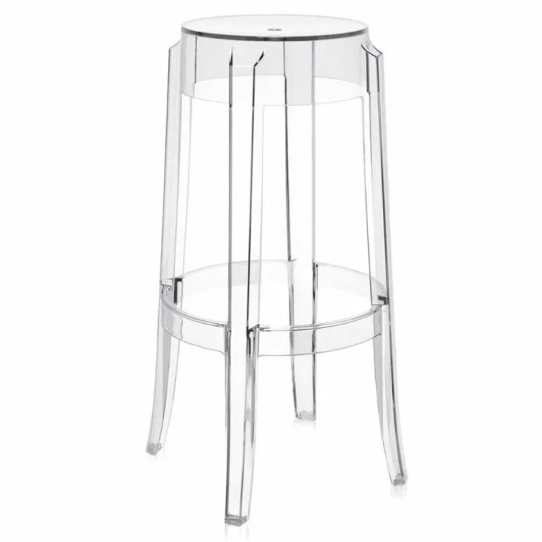 De Charles Ghost Barkruk is vervaardigd uit een uniek stuk doorzichtig polycarbonaat, waardoor het onverwoestbaar is; dit draagt ertoe bij dat de kruk overal kan gebruikt worden. r