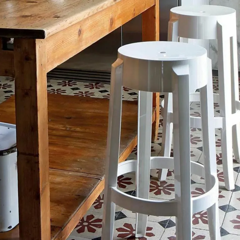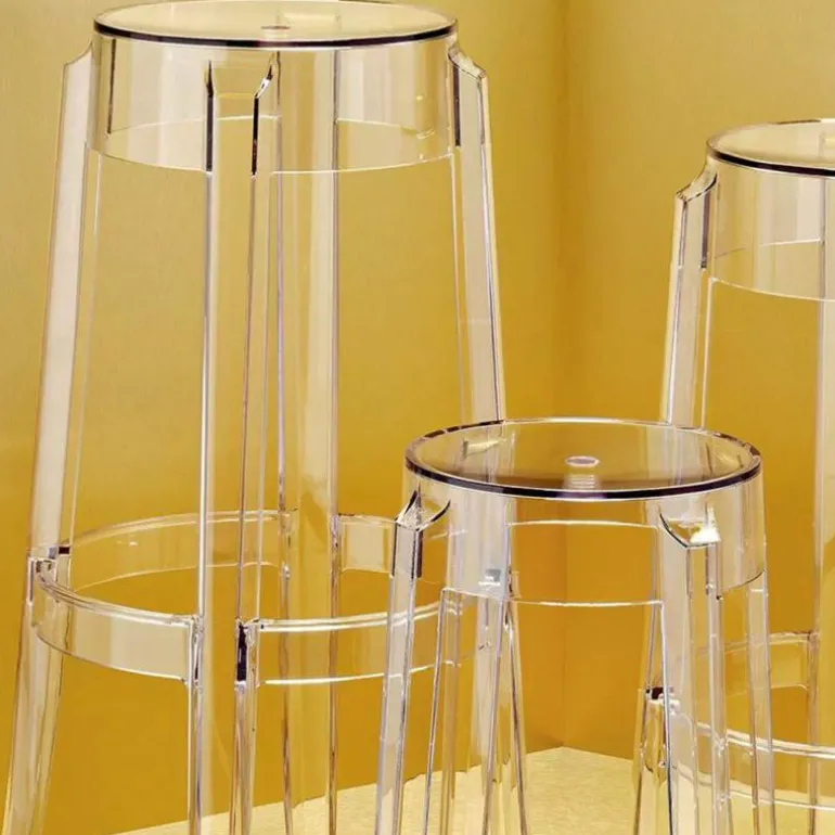 De Barkruk Charles Ghost is beschikbaar in drie verschillende groottes: van een krukje om af en toe gewoon even op te zitten tot een kruk voor in de keuken of aan de bar. r