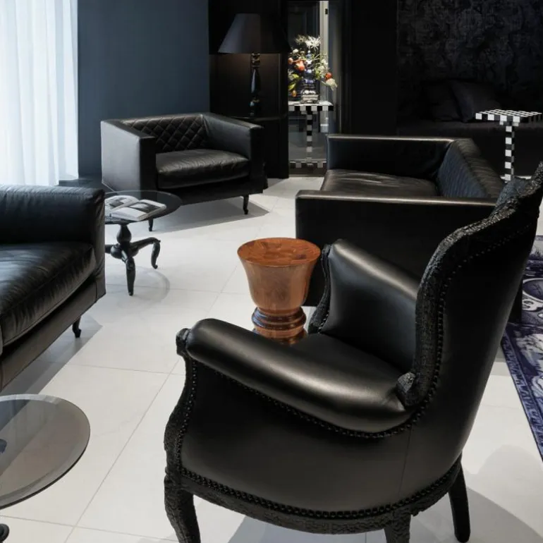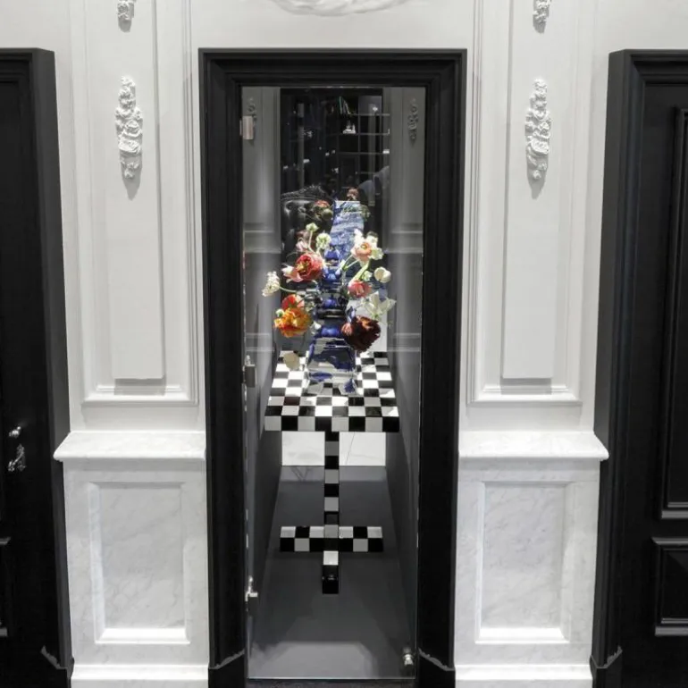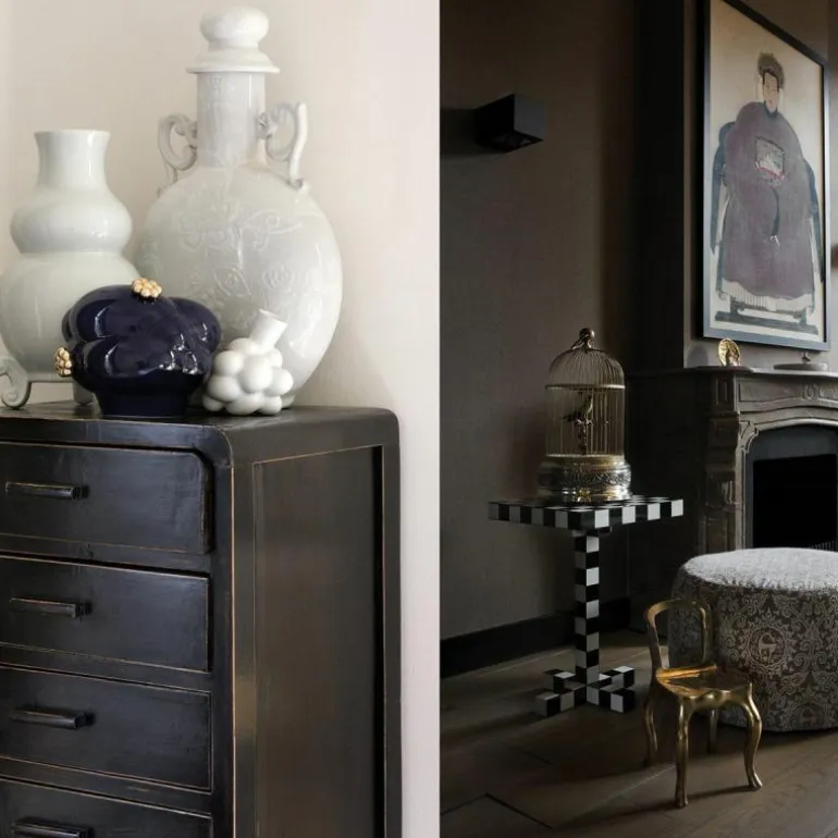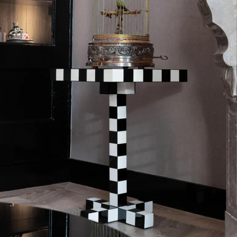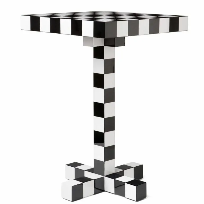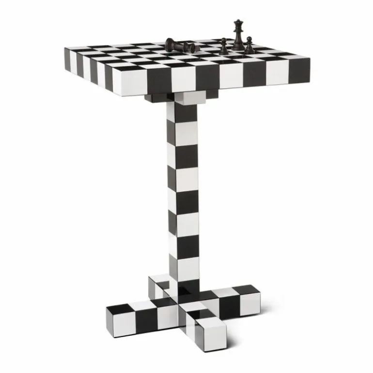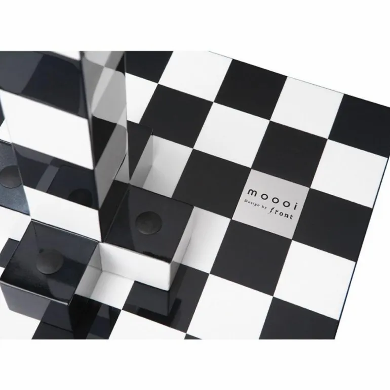 De Moooi Chess Bijzettafel is een ontwerp van de Zweedse designstudio Front. Front staat erom bekend hun designs een verrassend element mee te geven waardoor veel van hun werken absoluut memorabel zijn. De Chess is, zoals de naam doet vermoeden, tevens een schaaktafel. Na een schaakmat transformeert de Chess weer in een bijzettafel en is het zwart-wit geblokte patroon een haast popart-achtig detail in het interieur. De poot van de tafel is gemaakt van hout en het blad van MDF, afgewerkt met een hoogglanslak. De binnenkant is van staal.