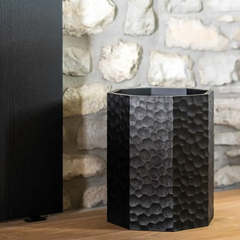 De Ethnicraft Chopped Prullenmand heeft een bijzonder patroon dat bestaat uit een verzameling rond uitgehakte stukjes, zoals de naam al verklapt. Hierdoor heeft de prullenmand een tactiel en karakteristiek uiterlijk. De prullenmand is een kunstwerk op zichzelf, maar is een functionele toevoeging in de kantoorruimte, badkamer of slaapkamer. De prullenmand is handgemaakt door Javaanse beeldhouwers die de rijke geschiedenis van ambacht met zich meedragen.r
