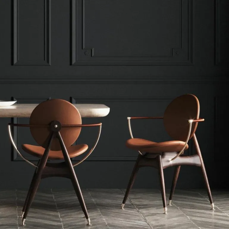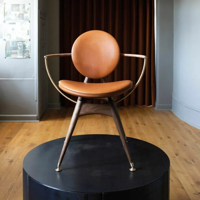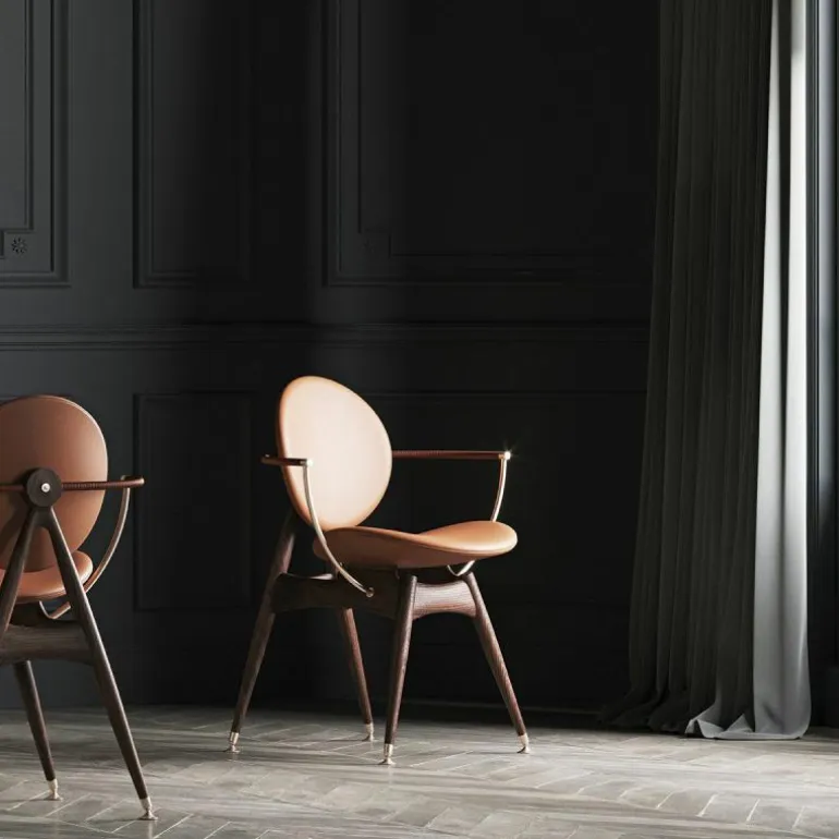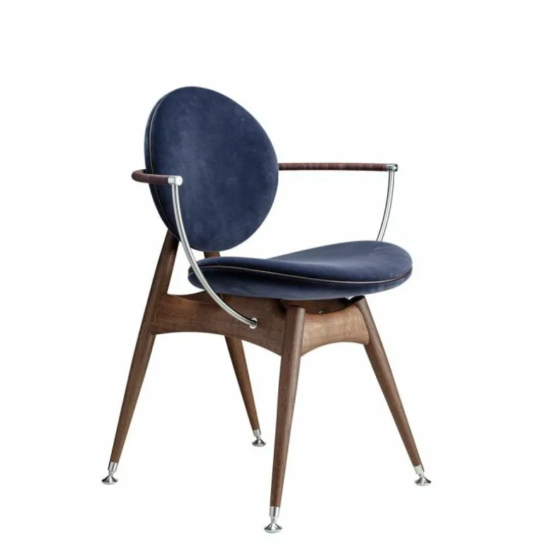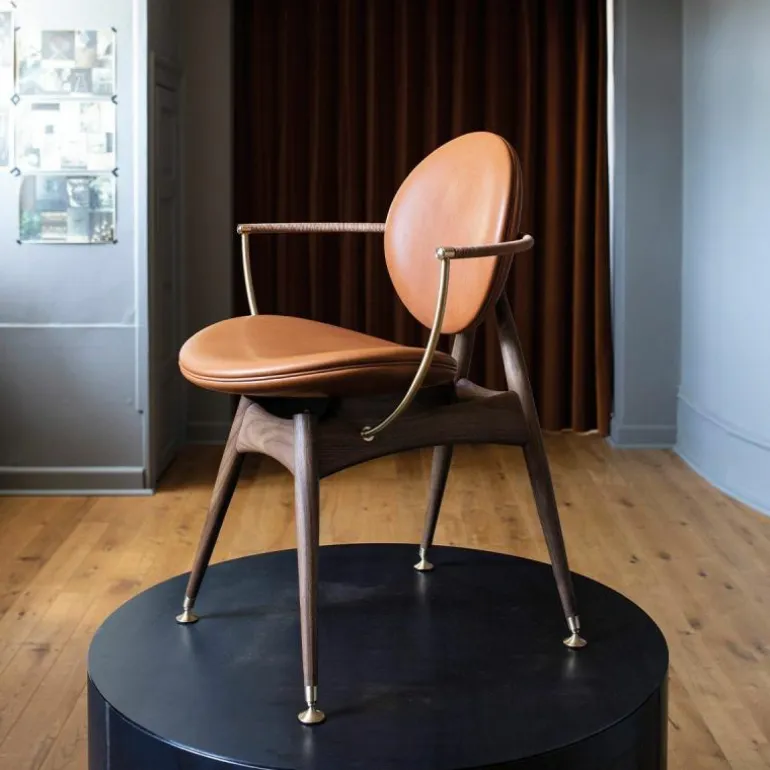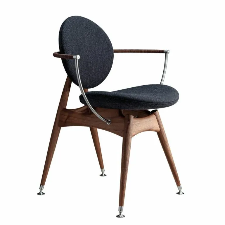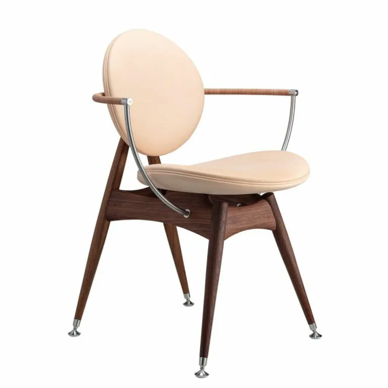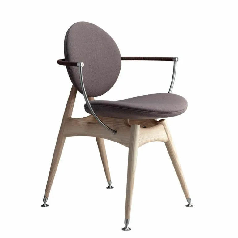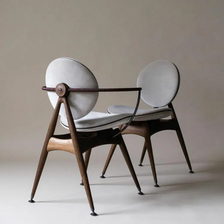 De Overgaard & Dyrman Circle Armstoel is een ontwerp van Jasper Overgaard en Christian Dyrman. De cirkel, het symbool van schoonheid en evenwicht, heeft dromers en makers altijd al gefascineerd. Net zoals dit gebeurde bij de oude wiskundigen Euclides en Leonardo Davinci, wordt ook de nieuwsgierigheid van Overgaard en Dyrman door deze perfecte geometrie geprikkeld. De inspiratie van het duo voor de Circle eetkamerstoel wordt geleid door de sierlijke bogen en uitnodigende rondingen van de cirkel. De stoel is bedoeld om van alle kanten bekeken te worden; iedere hoek biedt een uniek perspectief op de altijd inspirerende cirkel. r