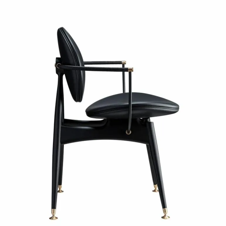 De ronde zitting van de eetkamerstoel met armen is verkrijgbaar in een breed aanbod aan stofferingen. Zo heeft u de keuze uit verschillende luxueuze stofferingen van hoogstaande fabrikanten zoals Kvadrat, Pierre Frey, Dedar en De Le Cuona. Optioneel kan er een lederen bies aan de stoffen zitting worden toegevoegd. Daarnaast zijn er ook diverse lederen opties beschikbaar. Hiervoor heeft u de keuze uit naturel anilineleder, luxueus ‘Elegance’ anilineleder, subtiel ‘Matstone’ anilineleder, robuust ‘Yellowstone’ anilineleder en behandeld ‘Horizon’ anilineleder. Het laatstgenoemde leder is behandeld met een speciale oppervlaktebehandeling waarmee het materiaal wordt beschermd tegen vlekken, maar de uitstraling van anilineleder behoudt.r