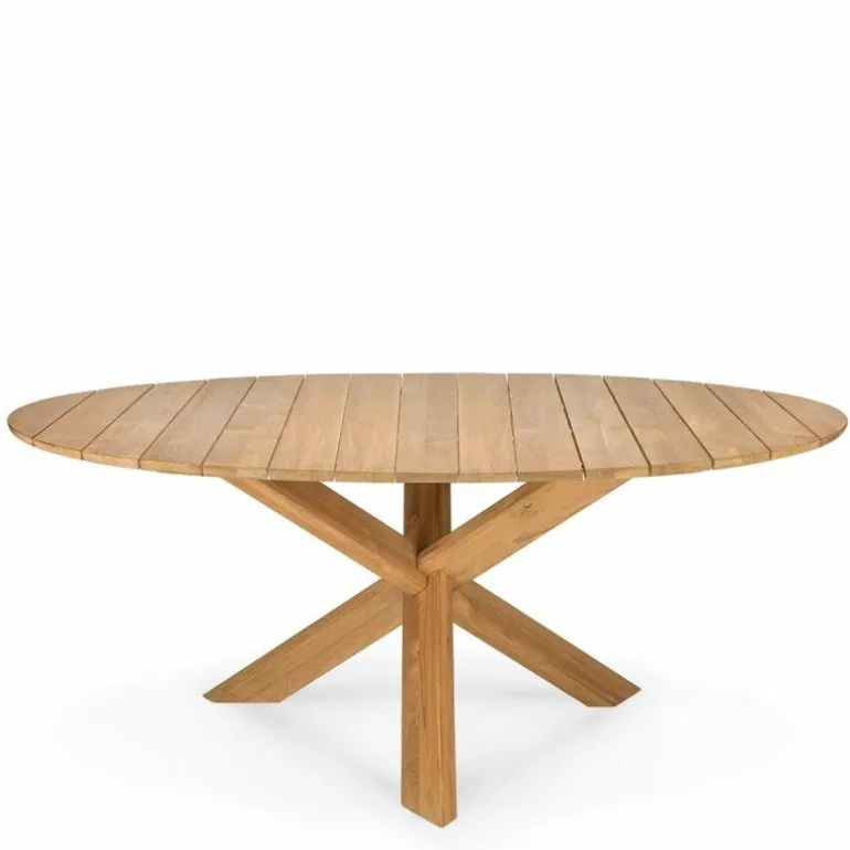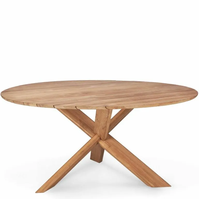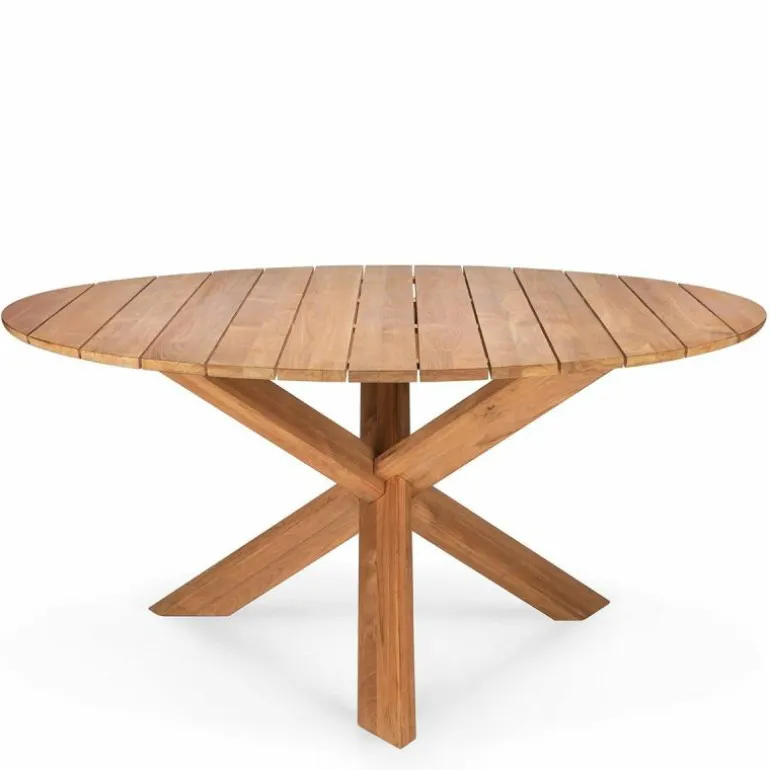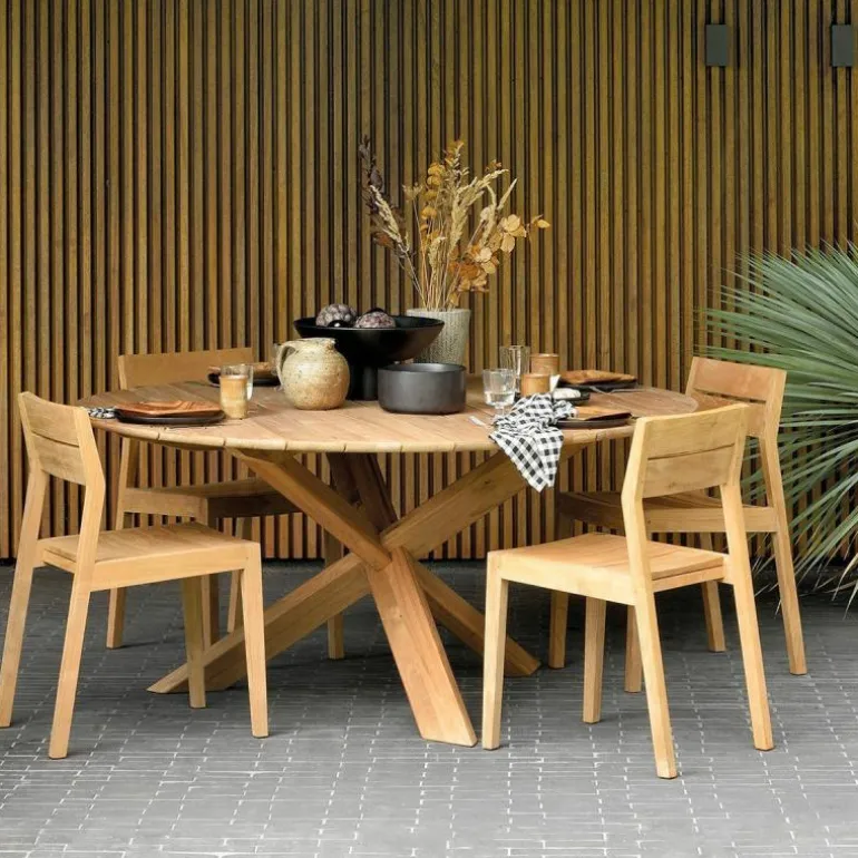 De Ethnicraft Circle Outdoor Tafel is een ontwerp uit de hand van Alain van Havre. Van Havre is gefascineerd door de complexiteit van dingen, wat duidelijk terugkomt in de ogenschijnlijk ingewikkelde constructie van het onderstel. De bijzondere poten van massief hout zijn geïnspireerd op Japanse puzzels en trekken meteen de aandacht. De schuine poten doorkruisen elkaar en vormen op deze manier een speels, maar robuust frame. Het blad is net zoals de poten gemaakt van massief teakhout, waardoor de tafel niet alleen heel stevig aanvoelt, maar dat ook daadwerkelijk is. Door het gebruik van massief hout is de natuurlijke uitstraling – en de aanwezigheid van knoesten en nerven – goed bewaard gebleven. r