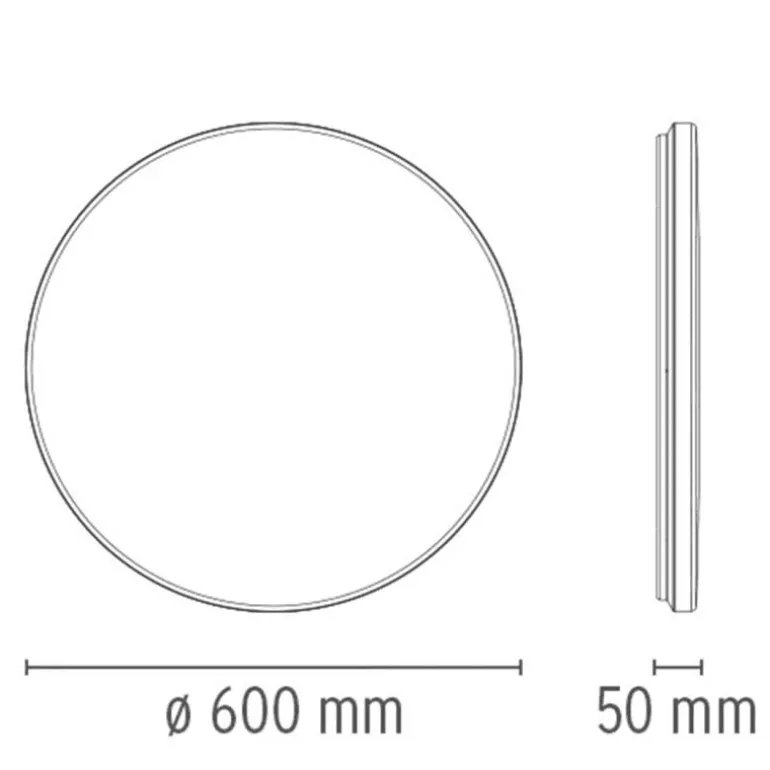 De plafond- en wandlamp heeft een diameter van 60 centimeter en een diepte van 5 centimeter. De TOP LED lichtbron van 60 watt is geïntegreerd in de lamp en is onvervangbaar. r