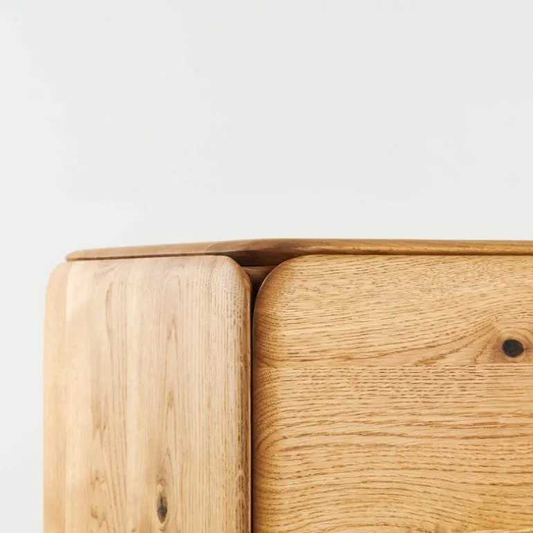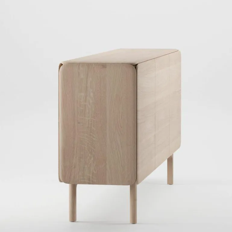 Het Cloud Dressoir is verkrijgbaar in Europees- en Amerikaans walnoothout, eiken-, kersen-, iepen en esdoornhout met een afwerking in gepigmenteerde of kleurloze olie. Geef uw woning een esthetische look door het dressoir te combineren met de Cloud Ladekast en geniet van nóg meer opbergplezier. r