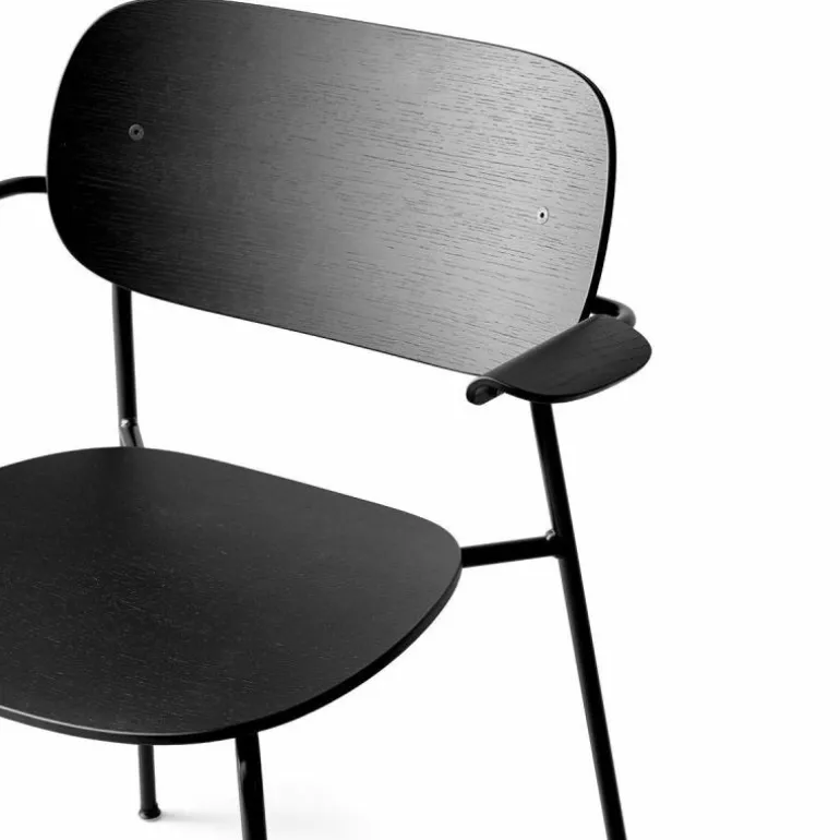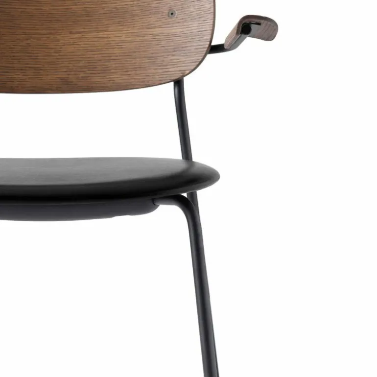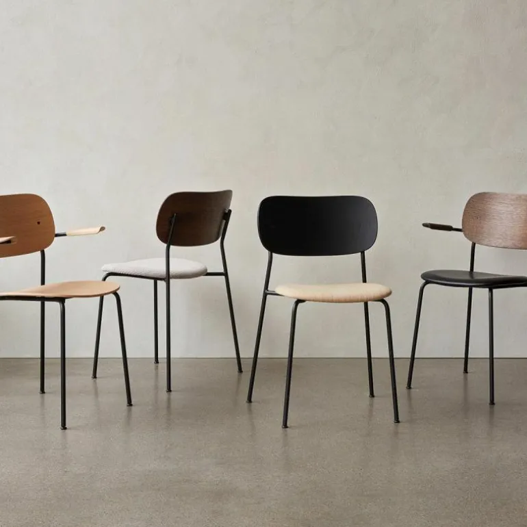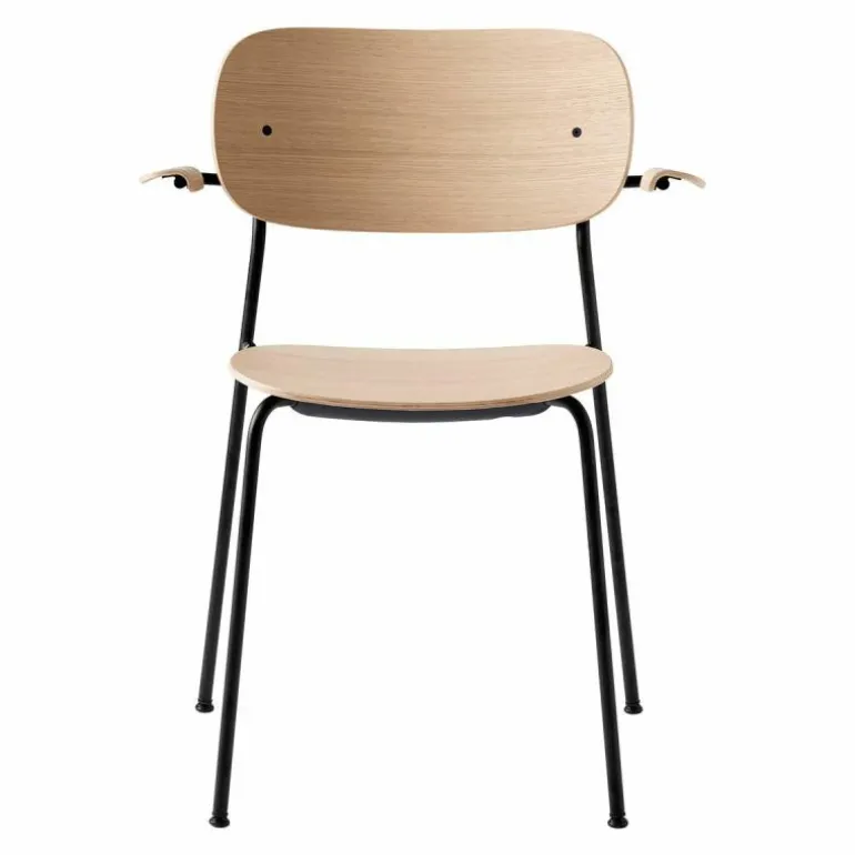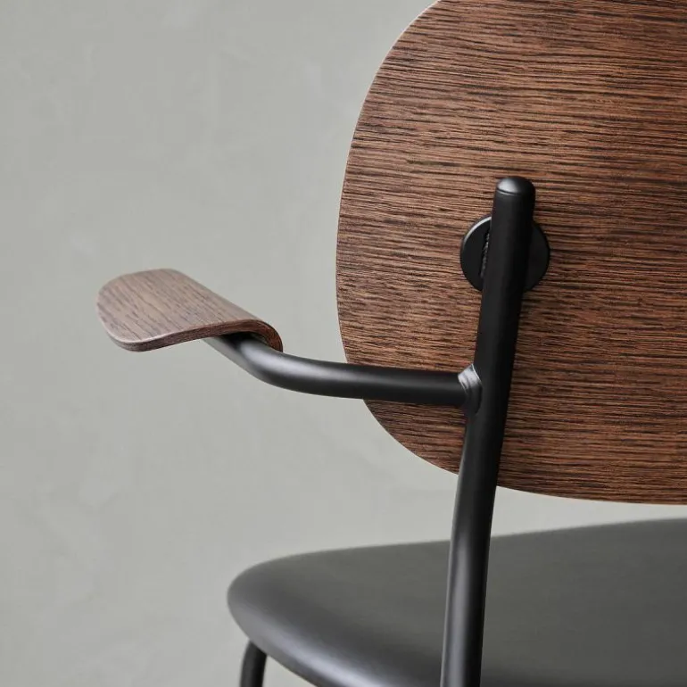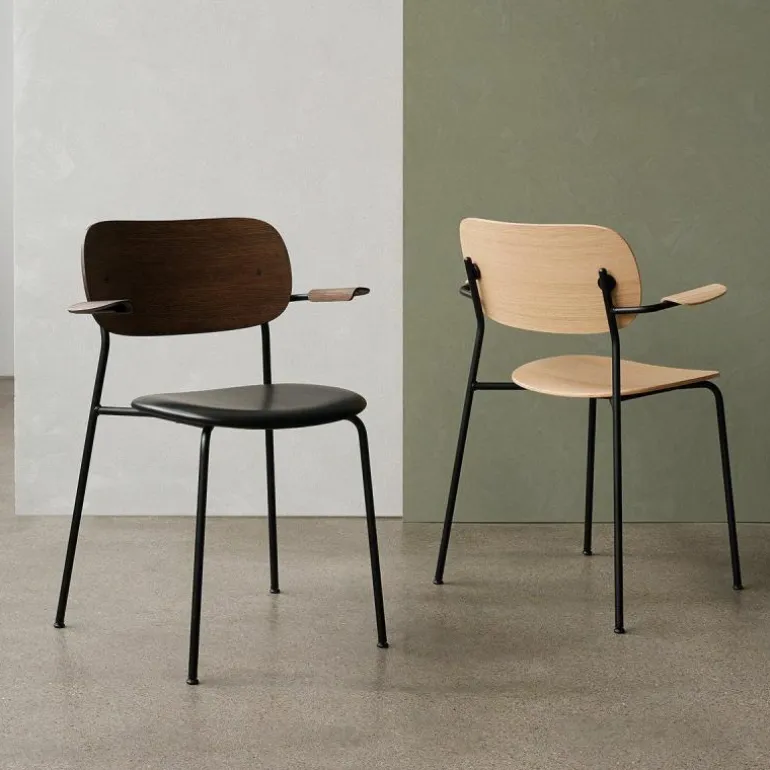 De Menu Co Stoel Met Armleuning is een ontwerp van Norm Architects & Els van Hoorebeeck en combineert lichtgewicht met geweldig zitcomfort. De signatuur van Norm Architects – minimalisme waarbij de mens centraal staat – wordt uitstekend vertegenwoordigd door de zachte contouren en de warme materialen van de stoel. De Co stoel onderscheidt zich door een brede rugleuning, die in combinatie met een vrije zithouding voor een heerlijk comfortabele zit zorgt. Optimaal comfort is tevens de aanleiding voor het design van de rugleuning, die zo gepositioneerd is dat u een geweldig zitcomfort ervaart. De Co chair is extreem veelzijdig en eenvoudig te personaliseren, het resultaat van een goed doordachte constructie en een brede keuze aan fineer afwerkingen en stofferingsmogelijkheden. Diezelfde constructie maakt het tevens eenvoudig de stoelen te stapelen tot een compacte toren van maximaal tien stoelen. Ideaal voor zowel huiselijk als zakelijk gebruik!r