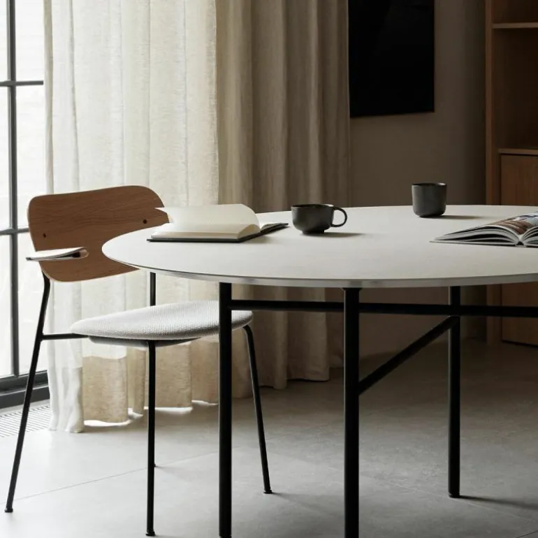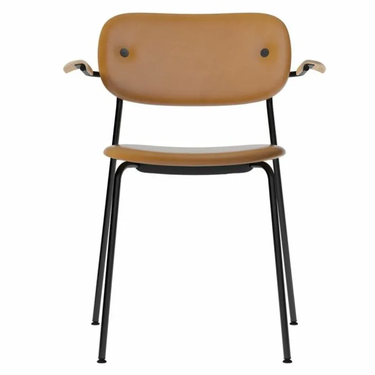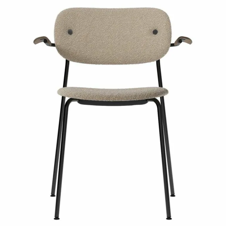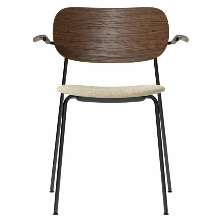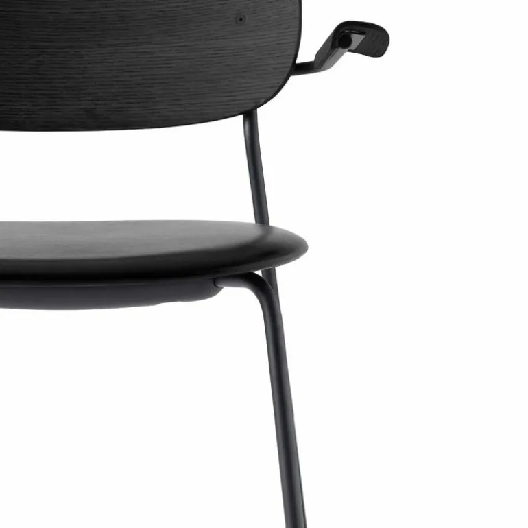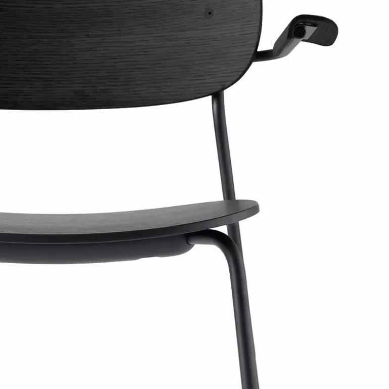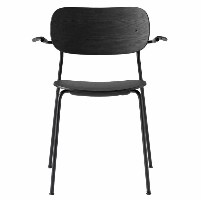 De Menu Co Stoel Met Armleuning is een ontwerp van Norm Architects & Els van Hoorebeeck en combineert lichtgewicht met geweldig zitcomfort. De signatuur van Norm Architects – minimalisme waarbij de mens centraal staat – wordt uitstekend vertegenwoordigd door de zachte contouren en de warme materialen van de stoel. De Co stoel onderscheidt zich door een brede rugleuning, die in combinatie met een vrije zithouding voor een heerlijk comfortabele zit zorgt. Optimaal comfort is tevens de aanleiding voor het design van de rugleuning, die zo gepositioneerd is dat u een geweldig zitcomfort ervaart. De Co chair is extreem veelzijdig en eenvoudig te personaliseren, het resultaat van een goed doordachte constructie en een brede keuze aan fineer afwerkingen en stofferingsmogelijkheden. Diezelfde constructie maakt het tevens eenvoudig de stoelen te stapelen tot een compacte toren van maximaal tien stoelen. Ideaal voor zowel huiselijk als zakelijk gebruik!r