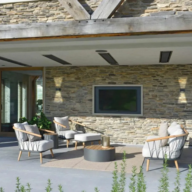 Deze fauteuil is onderdeel van de Coimbra collectie. De fauteuil kenmerkt zich door het vloeiende lijnenspel en zijn open structuur. Door de combinatie van teakhout en gecoat rvs krijgt de fauteuil een warme en toegankelijke uitstraling en met de ongekend comfortabele kussens wordt u uitgenodigd om urenlang te spenderen in de Coimbra Fauteuil. De aangename kussens worden standaard meegeleverd en zijn gemaakt van een all-weather stof genaamd Prato.