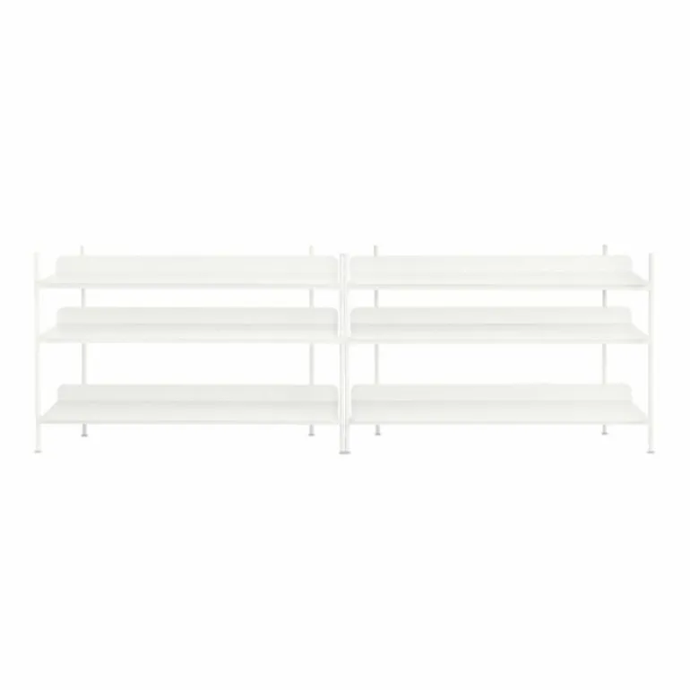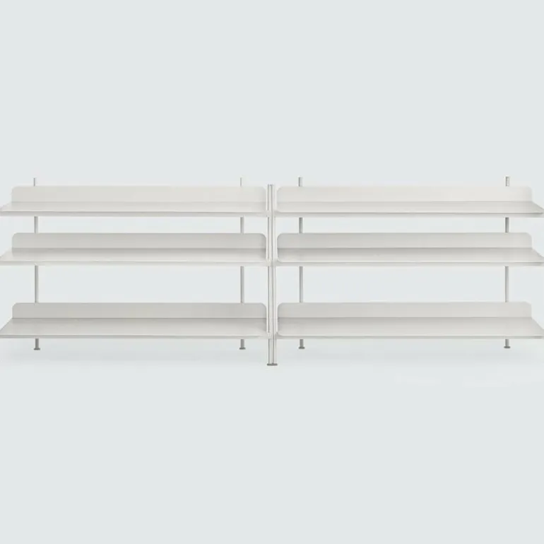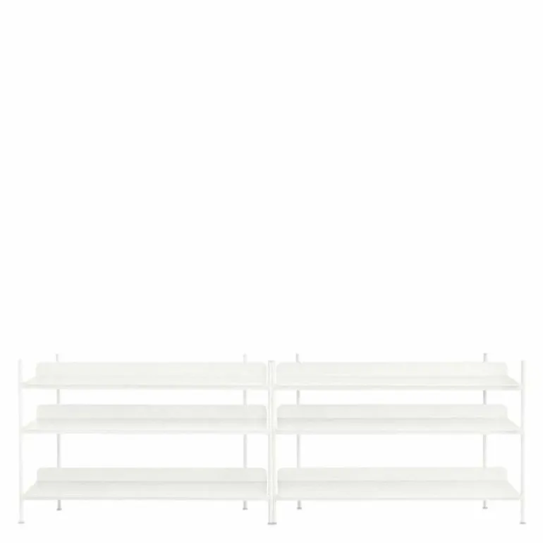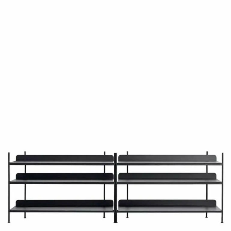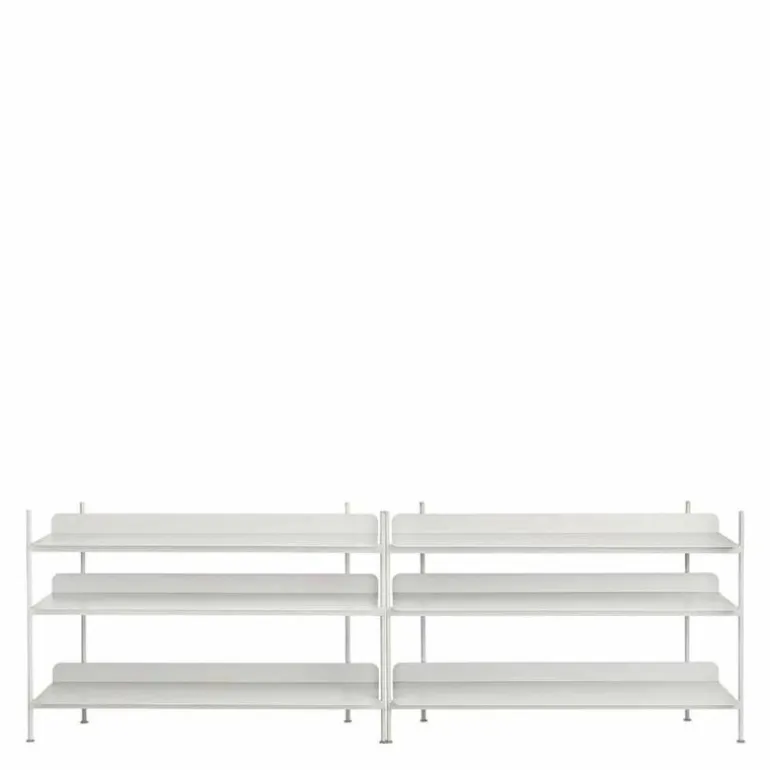 De Compile Kast 6 van Muuto is 244.5 centimeter breed, 78 centimeter hoog en 42 centimeter diep. De kast is verkrijgbaar in zwart, grijs en wit en wordt geheel vervaardigd uit gepoedercoat metaal. Naast deze uitvoering van de Compile Kast is de kast tevens verkrijgbaar in 7 andere configuraties.