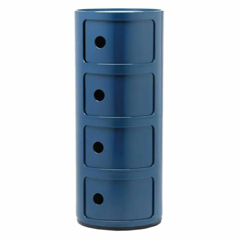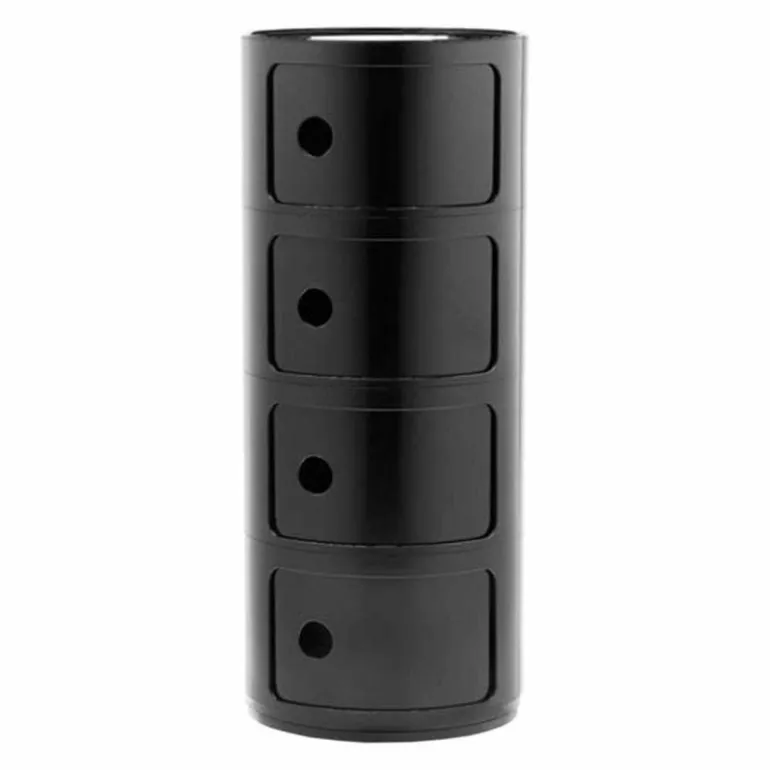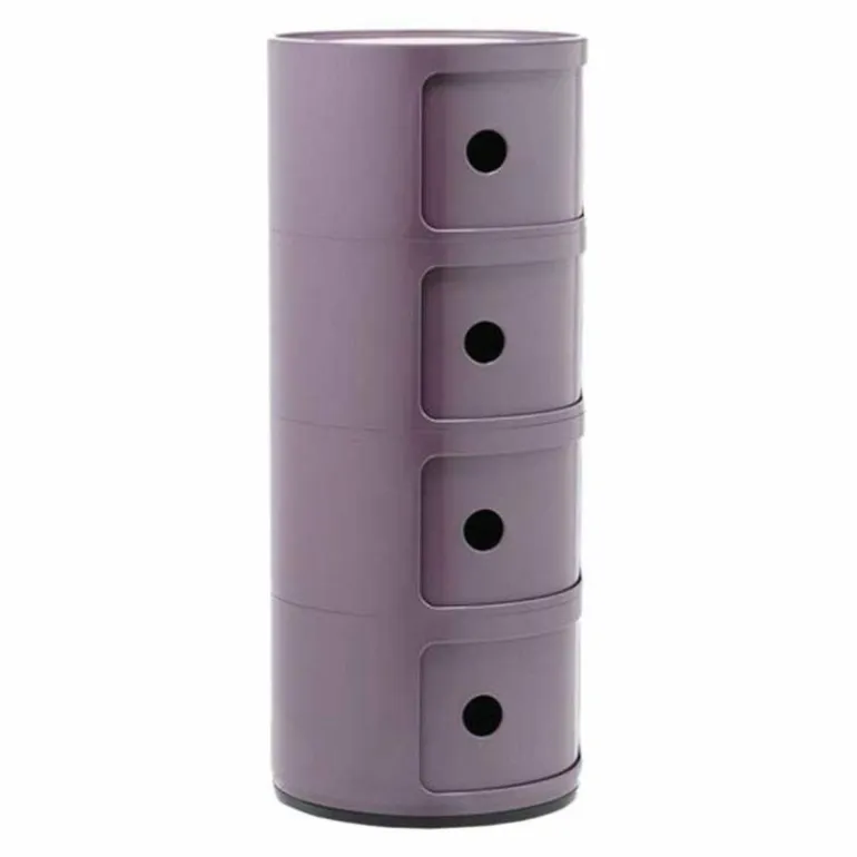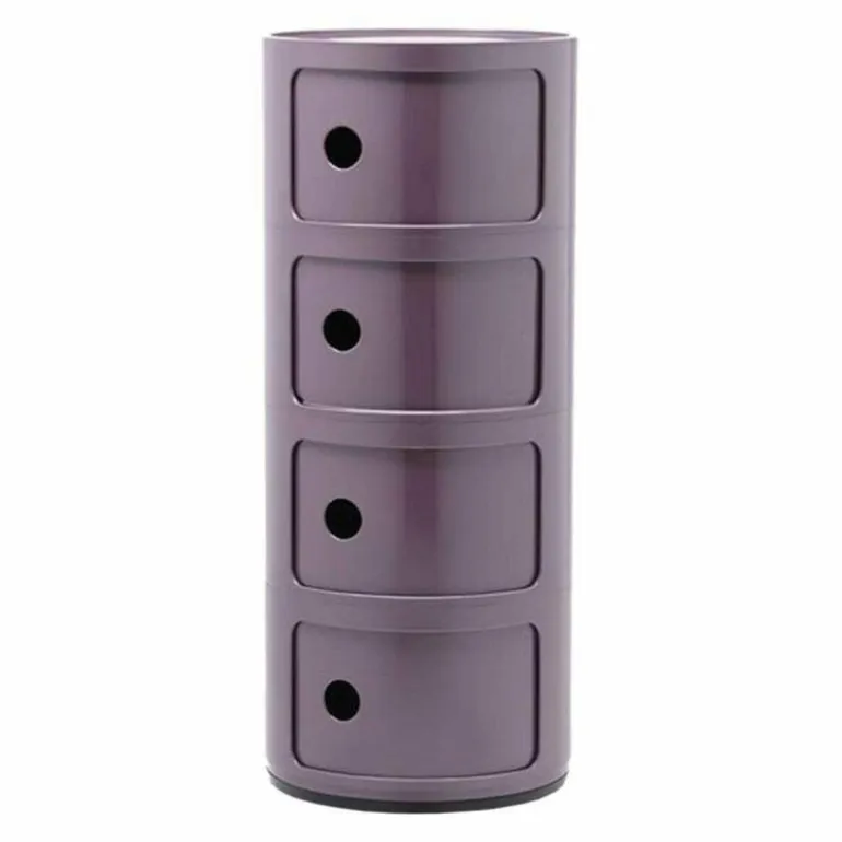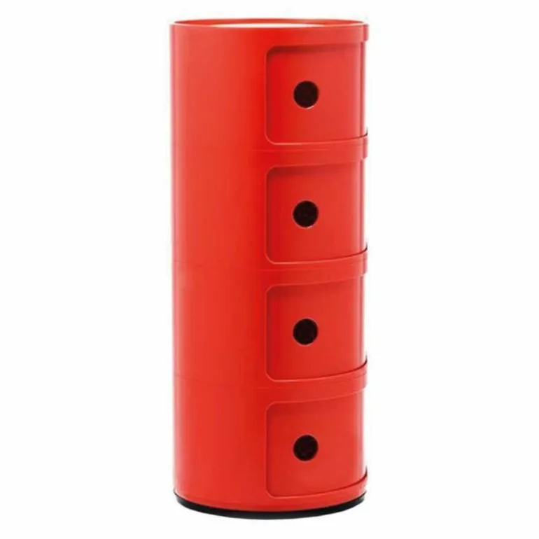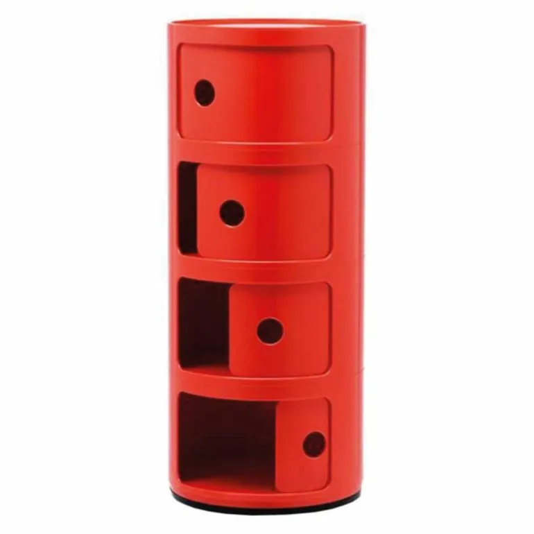 Het systeem Componibili komt tot leven door de eenvoudige en stevige verticale opstapeling van de afzonderlijke stukken, die makkelijk in elkaar gezet kunnen worden. Ze vormen daarmee handige mobiele opbergruimtes. De flexibele en praktische modulaire stukken zijn al bijna veertig jaar in productie en genieten wereldwijde erkenning vanwege hun bijdrage aan het innovatieve interieurdesign. Ze behoren tot de vaste collecties van het Museum of Modern Art in New York en in het Centre George Pompidou in Parijs. De opbergkastjes zijn inmiddels in veel veschillende formaten en (moderne) kleuren verkrijgbaar en zijn te gebruiken in praktisch iedere ruimte in huis waar u opbergruimte nodig heeft. De ronde vorm maakt de kastjes ook erg geschikt als bijzettafel. r