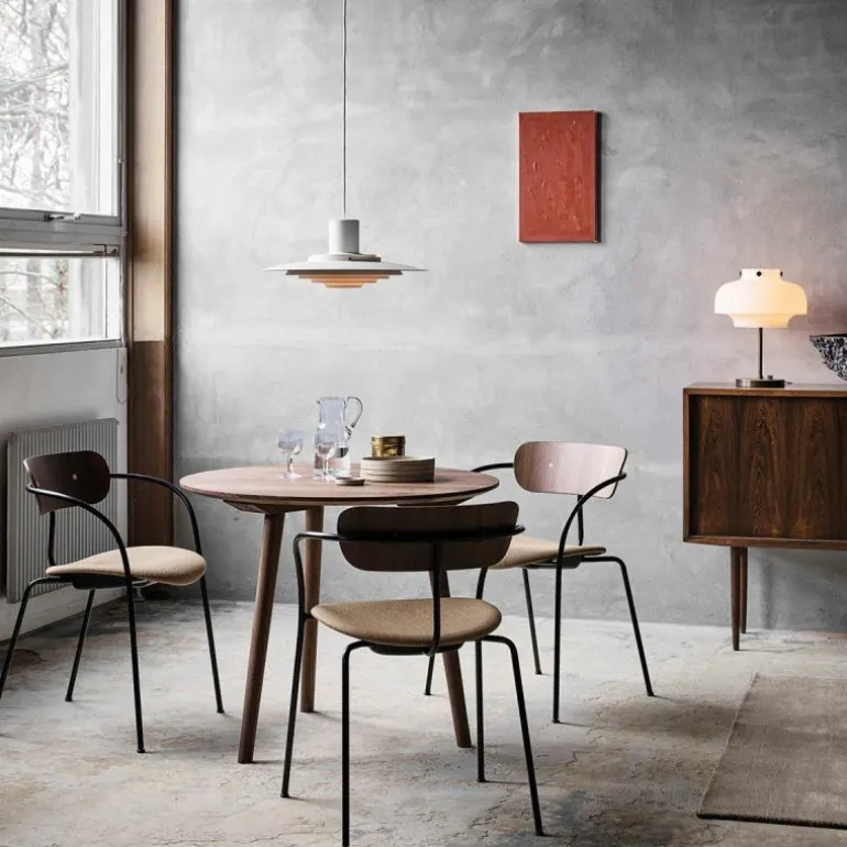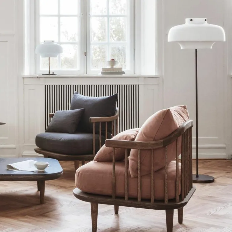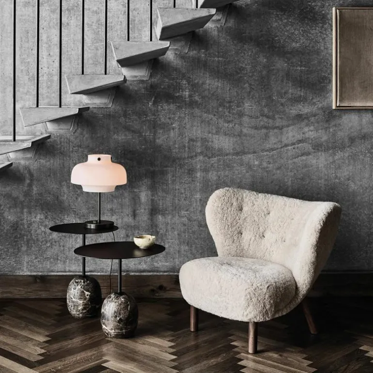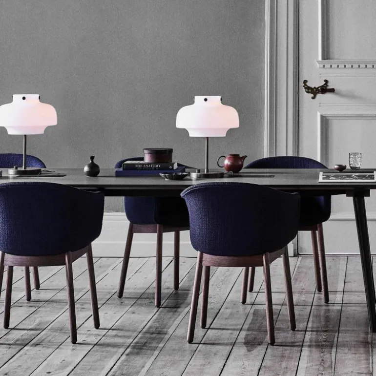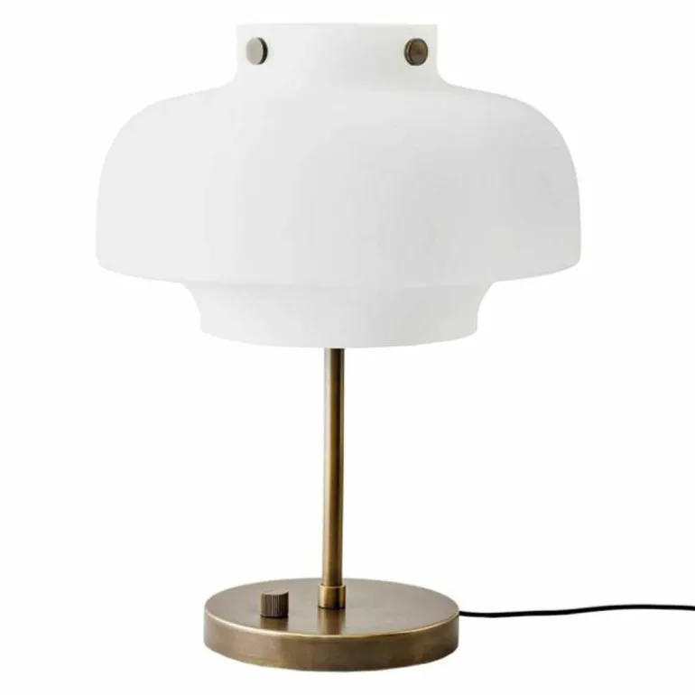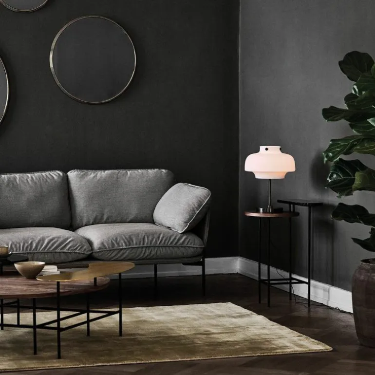 De Copenhagen lampenserie is geïnspireerd door de gaslampen die begin vorige eeuw de geplaveide straten in de haven van Kopenhagen verlichtten. In het moderne uiterlijk van de tafellamp met opaalglass en messing zijn subtiele maritieme invloeden te zien, die de lamp een klassiek, maar eigenzinnig karakter geven. Er zit een ingebouwde LED-dimmer op de draad van deze lamp, waardoor er een keuze is uit energiek wit licht om bijvoorbeeld bij te werken en warmer licht voor een kalm effect. Tafellamp Copenhagen heeft een diameter van 33 centimeter en is 42 centimeter hoog.