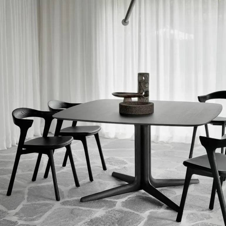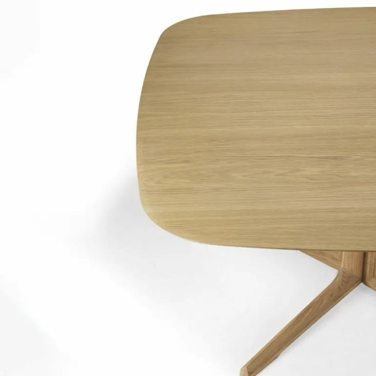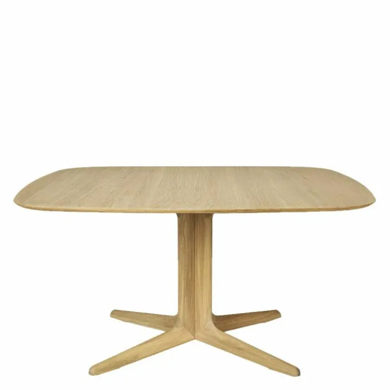 De Corto Eettafel is vervaardigd uit massief eikenhout en is behandeld met een beschermende vernislaag in een naturel of bruine kleur. Het tafelblad heeft zowel een lengte als een breedte van 161 centimeter en een hoogte van 76 centimeter.