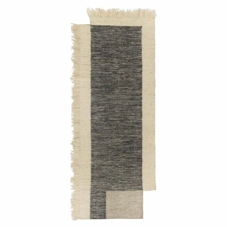 De Counter Loper is met de hand geweven en is vervaardigd uit wol met asymmetrische chambray-franjes. Deze franjes laten het neutraal gekleurde kleed toch levendig ogen. Het gebruik van aardse tinten maakt dat het vloerkleed in ieder interieur tot zijn recht komt.