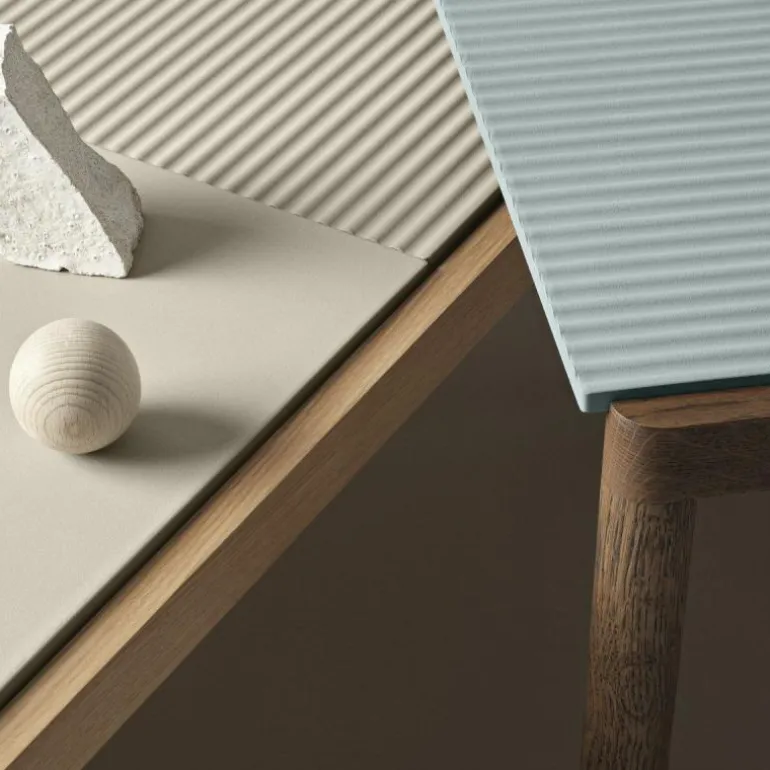 De Couple Salontafel heeft een tafelblad dat gemaakt is van keramiek. Het keramiek is behandeld met een steenverzegelaar dat extra bescherming biedt tegen vlekken. De tegels worden losjes op het frame geplaatst door middel van rubberen antislip strips. Dit zorgt ervoor dat de tegels goed op hun plek blijven liggen. Het frame is gemaakt van massief eikenhout en is behandeld met een heldere of donkere olie. Bovendien is de Couple Salontafel verkrijgbaar in twee andere afmetingen, welke onder aan de pagina terug te vinden zijn. De Couple Salontafel M heeft een lengte van 84,5 centimeter, een breedte van 80 centimeter en een hoogte van 40 centimeter. r