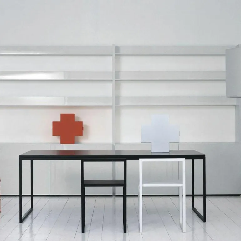 De wandkast is gemaakt van laser gesneden en gevouwen plaatstaal. Vervolgens is het design voorzien van een gelakte afwerking. U heeft de keuze uit een rode, groene of witte variant. De deur van de Cross Wandkast sluit door middel van een magneet.
