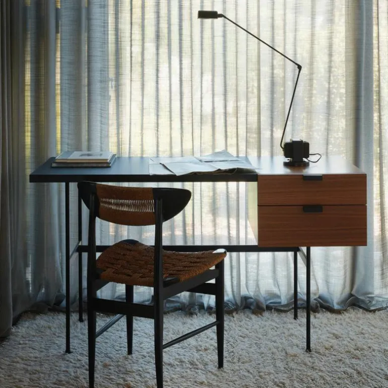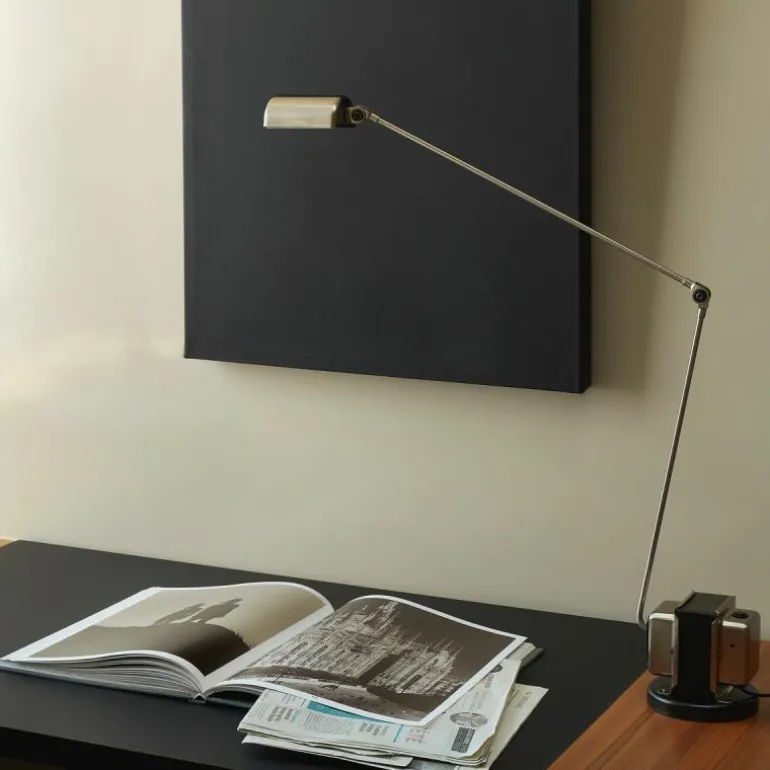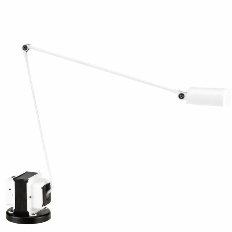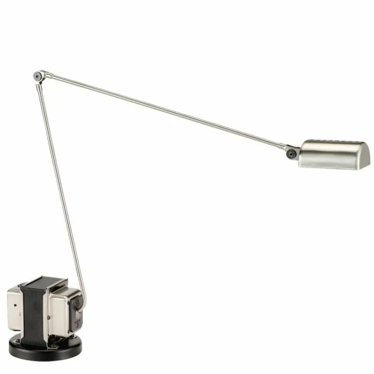 De tafellamp heeft een technisch en rauwe uitstraling en past perfect in een industriële inrichting of neutrale (kantoor)ruimte. Dankzij de flexibele vormgeving kan de lamp ook op vele manieren worden gebogen, gestrekt en gedraaid. Zo kan de lampenkap 360 graden om zijn as worden gedraaid, terwijl de arm op twee punten te buigen, strekken en draaien is. Deze flexibele mogelijkheden dragen bij aan een functionele en stijlvolle tafellamp voor op iedere tafel en op ieder bureau. Bovendien zorgt de LED-lichtbron, dat te bedienen is via de tweestappenschakelaar op de blokvormige voet voor een diffuus en sfeervol downlight op elk tafeloppervlak.r