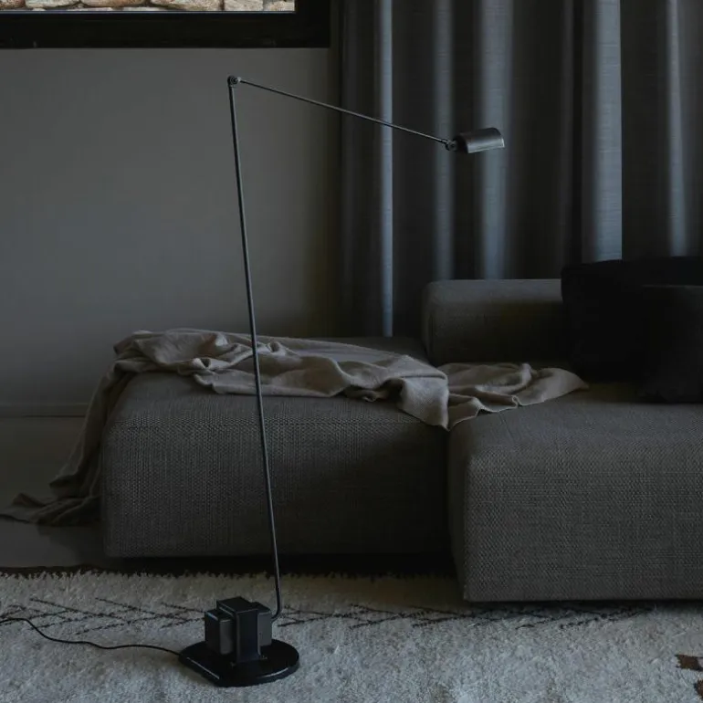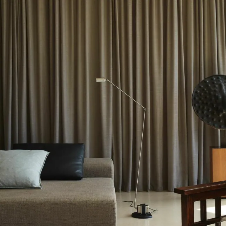 De ranke vloerlamp is zeer veelzijdig, omdat vrijwel ieder deel van het armatuur in elke richting is in te stellen. Zo kan de lampenkap 360 graden worden gedraaid, terwijl de twee armen een maximale reikwijdte hebben van 136 centimeter waarbij een arm van 45 centimeter 270 graden te buigen is. Het ontwerp is bijzonder geschikt als sfeermaker in de woonkamer en tegelijkertijd praktisch als leeslamp naast een fauteuil. Deze lamp is een onderdeel voor het creëren van uniciteit elk interieur. Bovendien zorgt de 9W LED-eenheid, dat te bedienen is via de tweestappenschakelaar op de blokvormige voet voor een dimbaar en sfeervol warm-wit licht.r