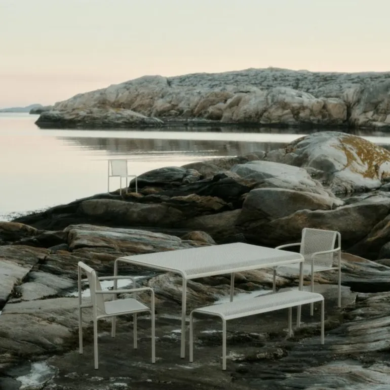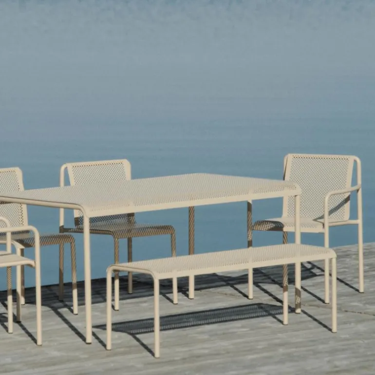 De Dapple Bench sluit aan bij de ontwerpfilosofie van Ferm Living, waarin duurzaamheid, materiaalkeuze en bruikbaarheid samenkomen. Door het gebruik van staal met een beschermende afwerking ontstaat een meubel dat lang meegaat en bestand is tegen intensief gebruik. De combinatie van praktische eigenschappen en een verfijnde vormgeving maakt de bank tot een meubelstuk dat zowel functioneel als decoratief is.