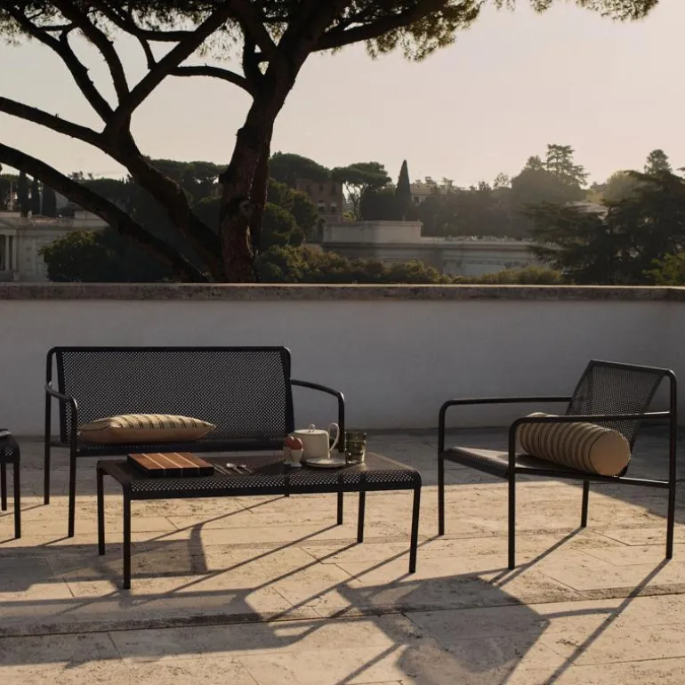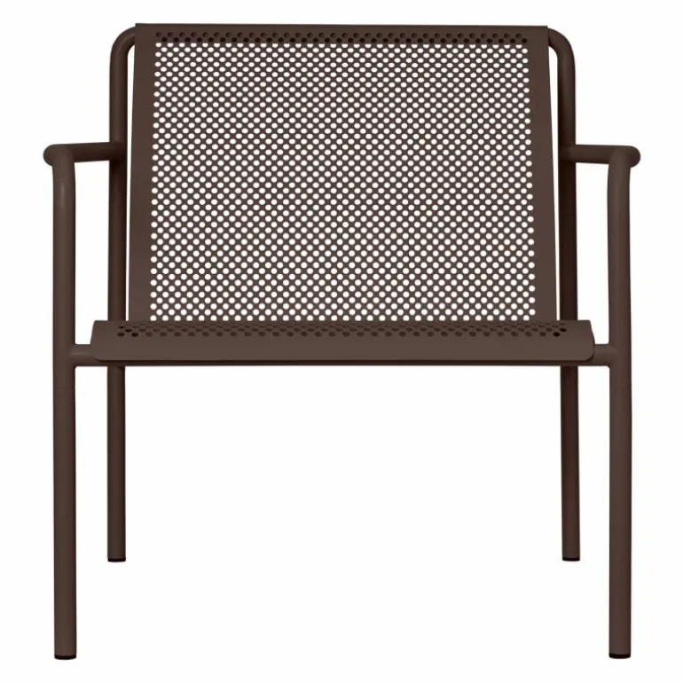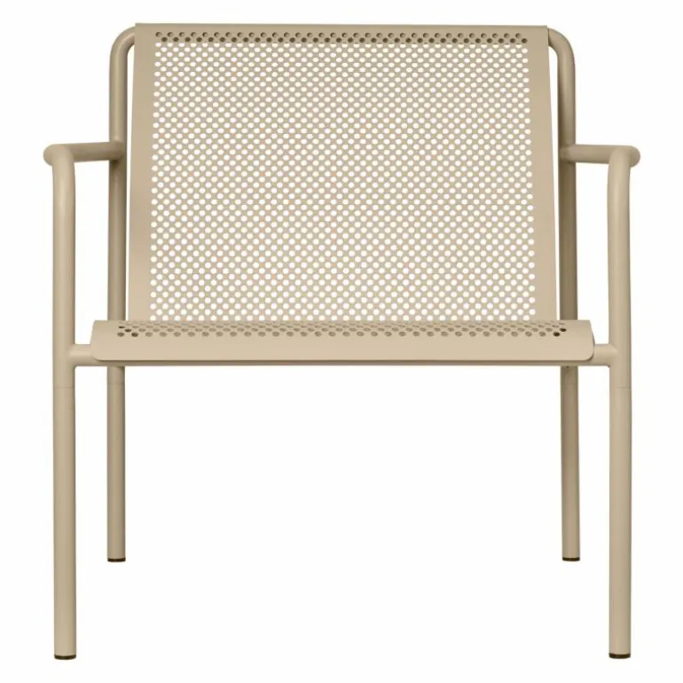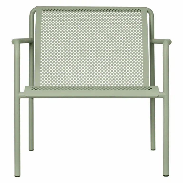 De Dapple Lounge Chair is vervaardigd uit elektro-gegalvaniseerd staal dat is voorzien van een duurzame poedercoating. Deze afwerking beschermt het oppervlak tegen weersinvloeden en maakt de stoel bestand tegen roest. De constructie is robuust maar verfijnd, waardoor de stoel langdurig geschikt blijft voor gebruik in verschillende seizoenen. De perforaties in het staal zorgen ervoor dat regenwater niet op het zitvlak blijft liggen, wat bijdraagt aan de duurzaamheid en het onderhoudsgemak.