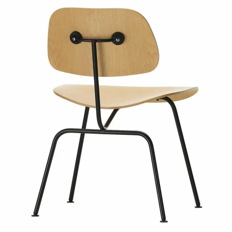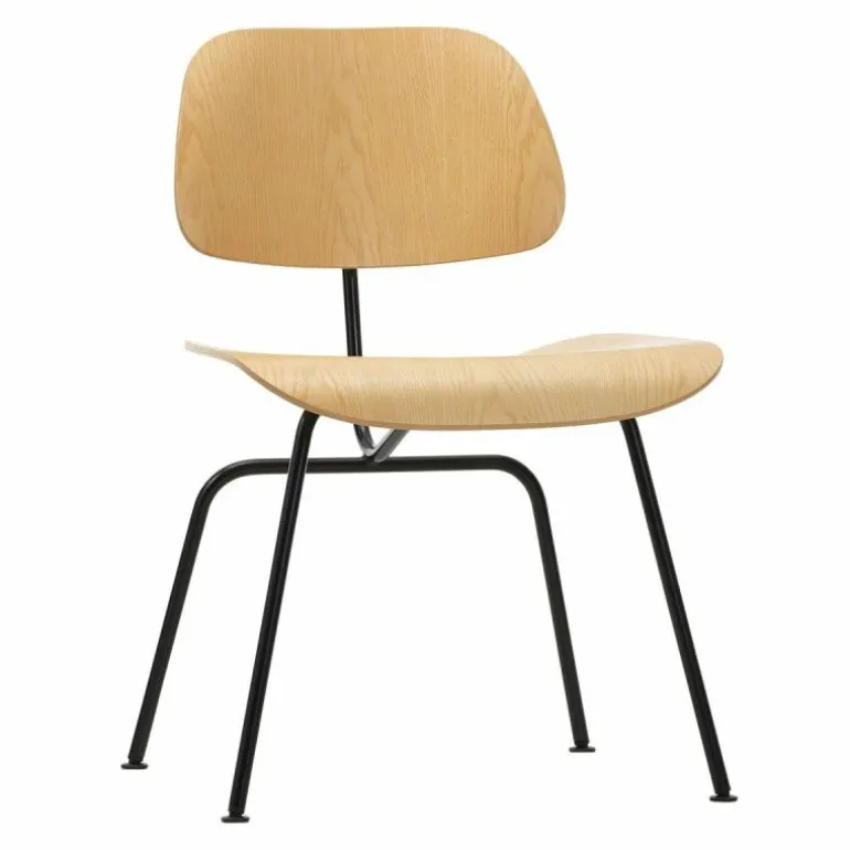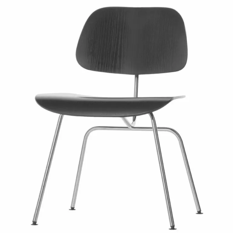 De Plywood Group bestaat uit een serie van 6 verschillende modellen die zich onderscheiden door materialen en stoffering. De DCM, dat staat voor Dining Chair Metal, heeft een rugleuning en zitting vervaardigd uit gevormd multiplex (essenhout) en is verkrijgbaar in naturel of zwart gebeitst. Het onderstel is gemaakt van verchroomd metaal.r