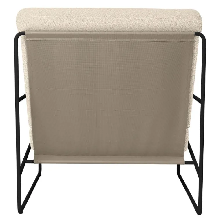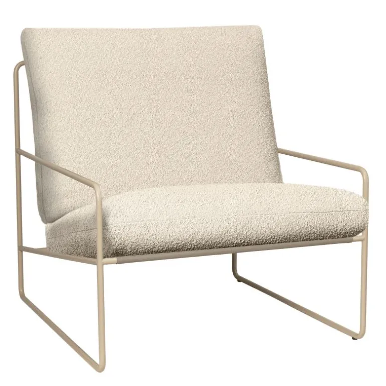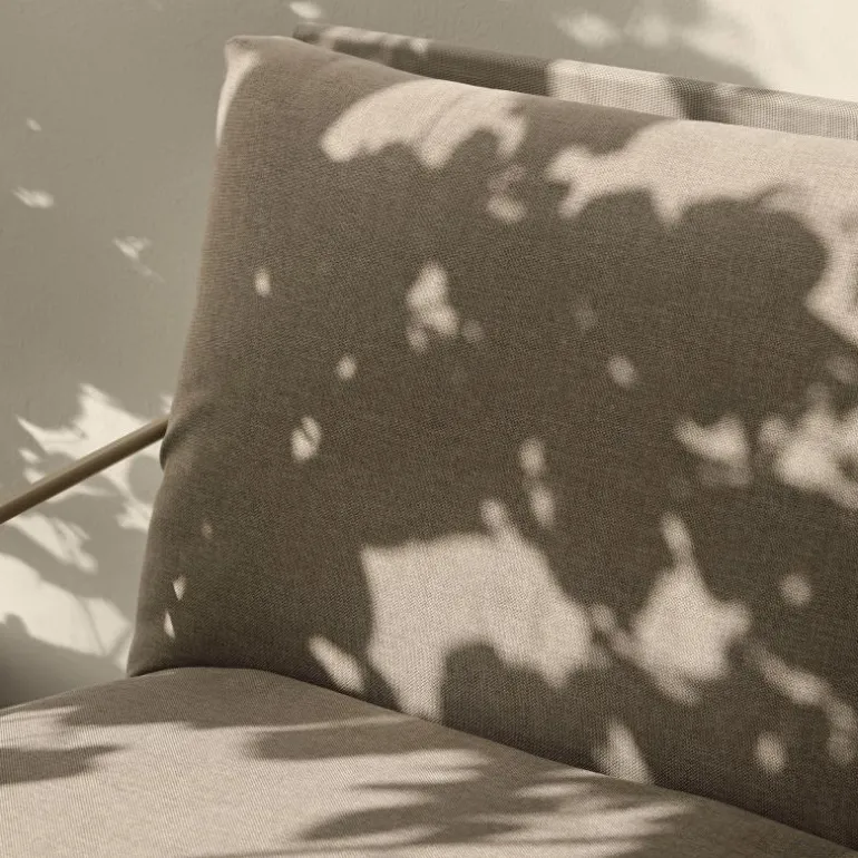 De Desert fauteuil wordt geleverd met royale kussens die zorgen voor een zachte en comfortabele zit. De bekleding is uitgevoerd in een gestructureerde bouclé, een textiel dat bekendstaat om zijn tactiele kwaliteit en dat in dit ontwerp geschikt is gemaakt voor buitengebruik. Door de waterafstotende behandeling en de bescherming tegen uv-straling behoudt de stof zijn uitstraling, zelfs bij wisselende weersomstandigheden. Vlekken kunnen eenvoudig worden verwijderd, waardoor de fauteuil praktisch inzetbaar blijft, ook in een buitenomgeving.
