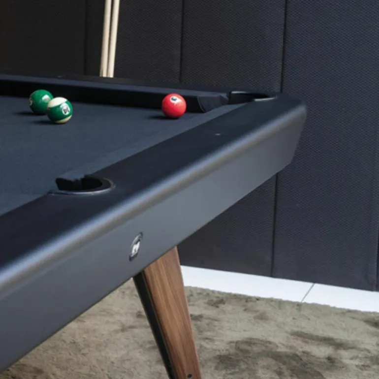 De pooltafel wordt geleverd met een Aramith Premium set van zestien ballen, twee keuen van Dufferin Club in Canadees esdoornhout, een triangle en een tafelborstel. De pooltafel beschikt over een bak van staal met een gekleurde poedercoating in vijf kleuren. De stof in de bak bestaat uit 90% geborsteld wol en 10% nylon, tevens verkrijgbaar in vijf kleuren, en de poten zijn opgesteld uit een combinatie van eiken-, Iroko- of walnoothout en metaal.r