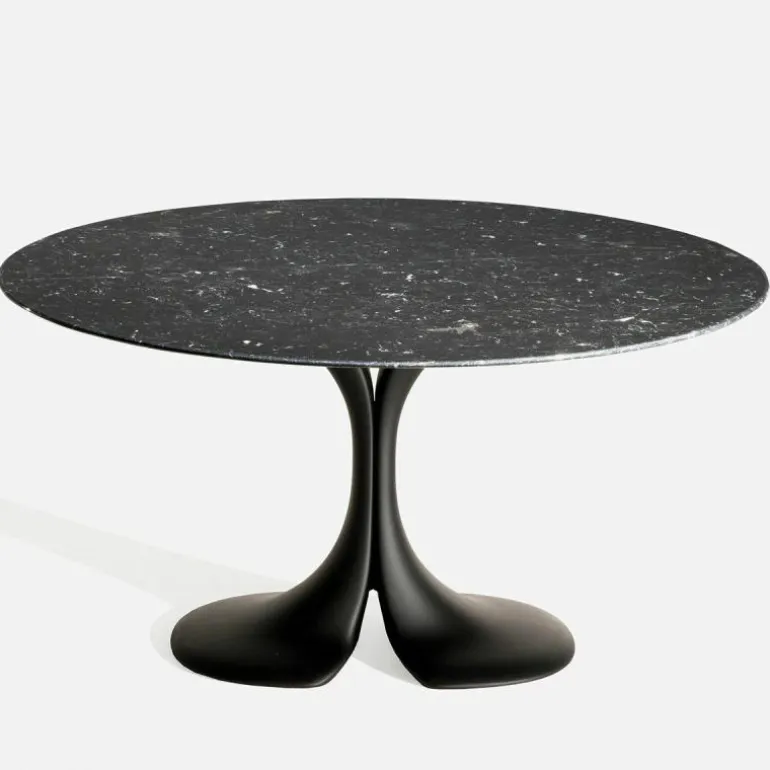 Dit composietmateriaal bestaat uit een hoog percentage natuurlijke mineralen en een laag percentage polyester en acrylpolymeren, en is zeer sterk en zeer glad qua oppervlak. Het tafelblad is vervaardigd van wit Carrara marmer of zwart Nero Marquina marmer en heeft een dikte van 20 millimeter. Daarnaast zijn er ook uitvoeringen verkrijgbaar met een tafelblad van Cristalplant, deze uitvoering beschikt over een dikte van 30 millimeter. De ronde Didymos eettafel is verkrijgbaar in twee afmetingen: met een diameter van 110 of 140 centimeter, beide maten hebben een hoogte van 72 centimeter.r