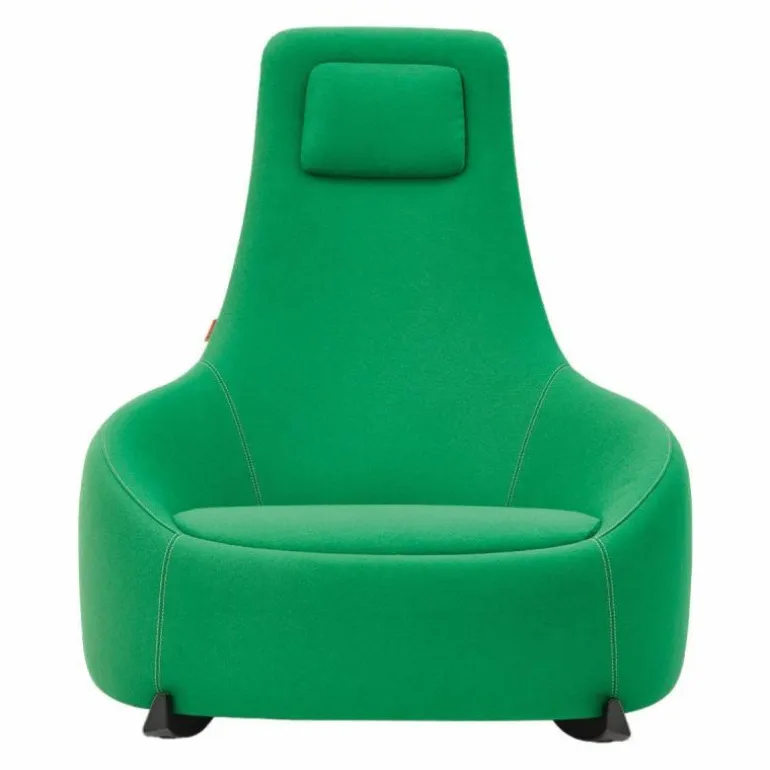 Als we de vorm van de Dim Sum Fauteuil bekijken valt als eerste de smal gevormde hoge rug op. Deze smalle vorm loopt uit naar een bredere vorm van de arm en de zitting. Zachte vormen en ronde lijnen markeren het silhouet van de fauteuil. De stoelvorm heeft een zwevend effect doordat de fauteuil aan de onderzijde op twee gebogen houten vormen staat. Dit schommelonderstel geeft de fauteuil een extra functie om zacht schommelend nog beter te ontspannen. Het schommelen geeft naast extra ontspanning een betere focus en concentratie. r