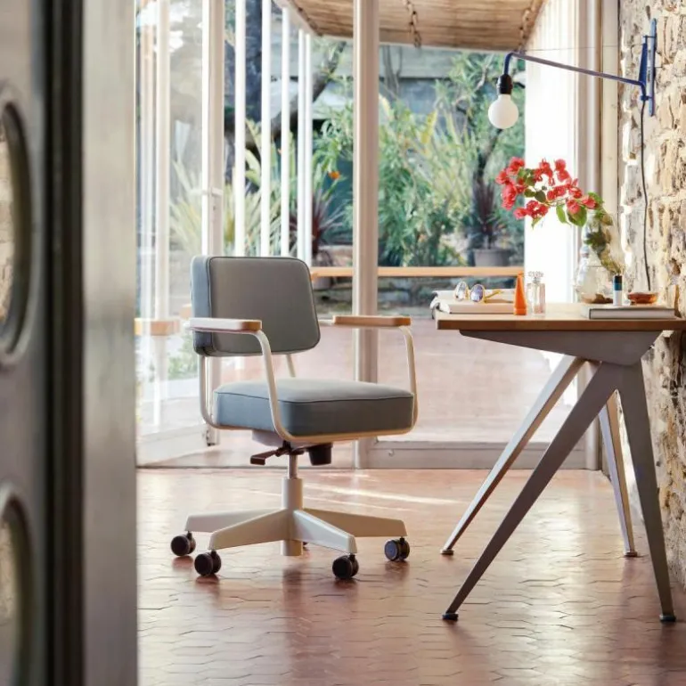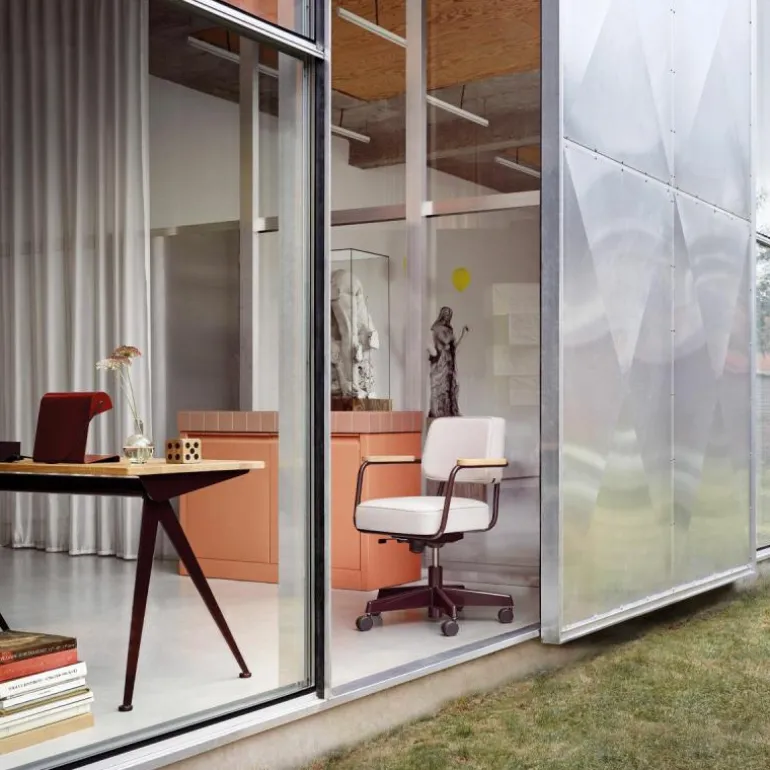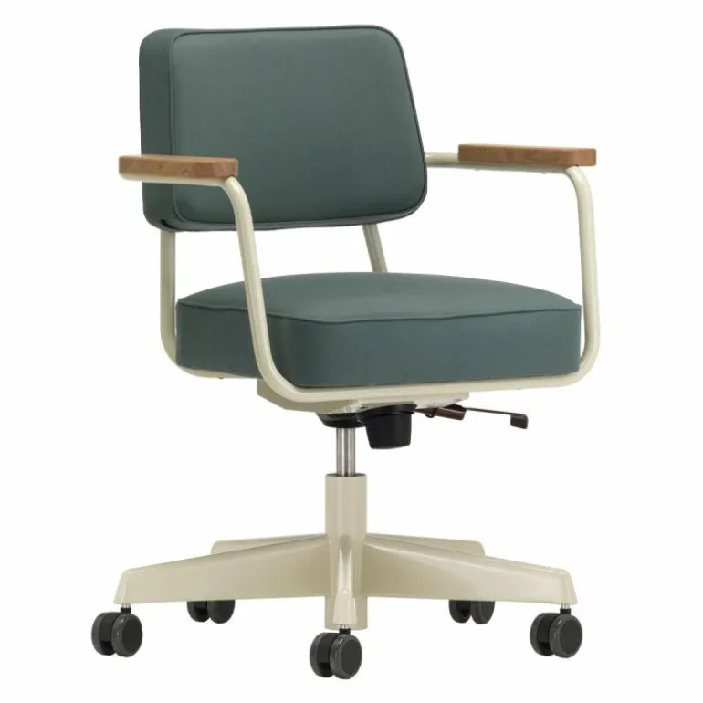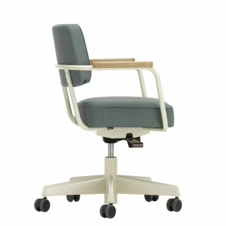 Het onderstel is vervaardigd uit gebogen plaatstaal en staalbuis en vervolgens afgewerkt in een poedercoating. De kussens hebben een vulling van polyurethaan en zijn vervolgens bekleed. De armleuningen zijn gemaakt van eiken of walnoot. Het onderstel is in hoogte verstelbaar en heeft ook een kantelfunctie. r